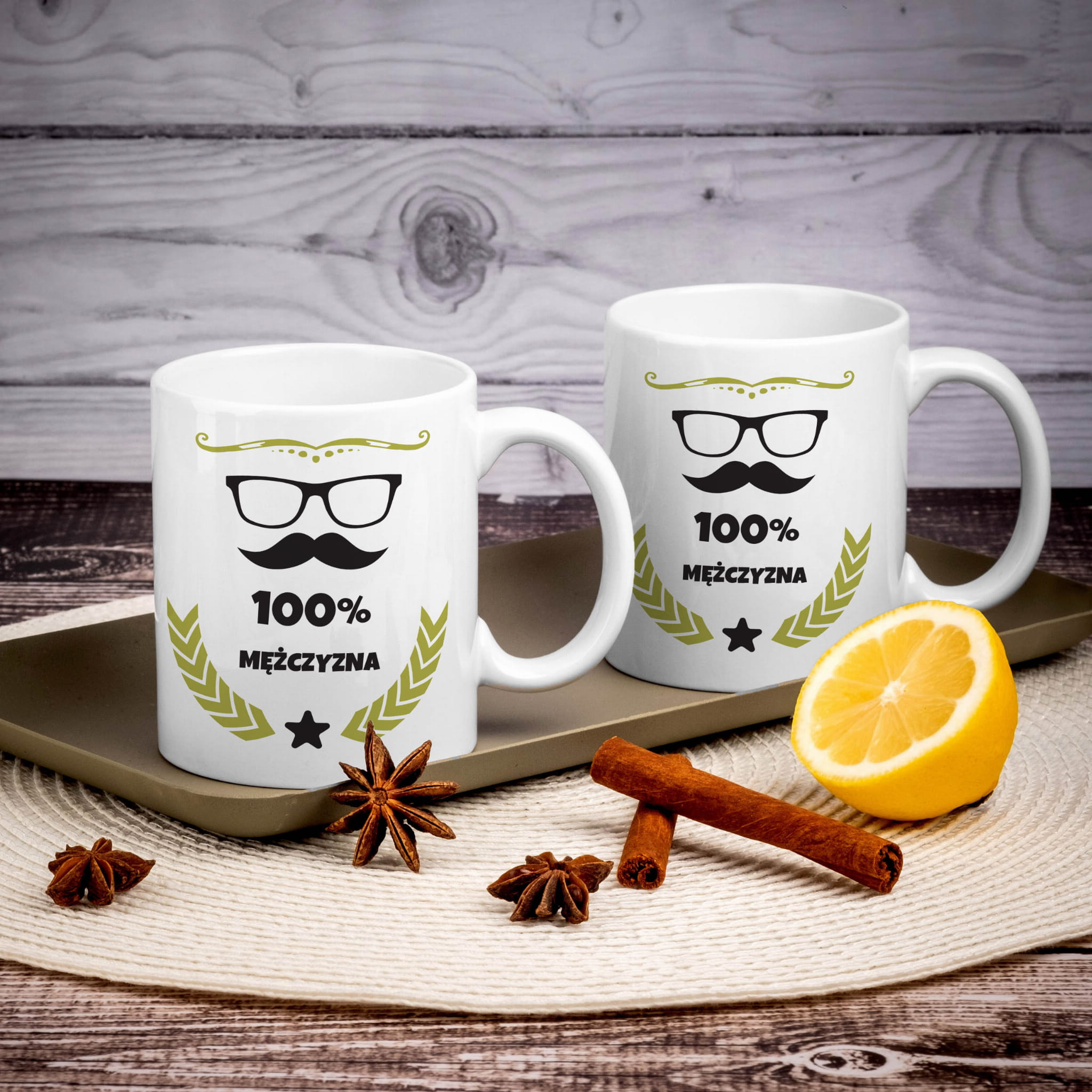 Szukasz taniego prezentu dla niego na wiele okazji? Wybierz biały kubek z oryginalnym nadrukiem 100% Mężczyzna.
