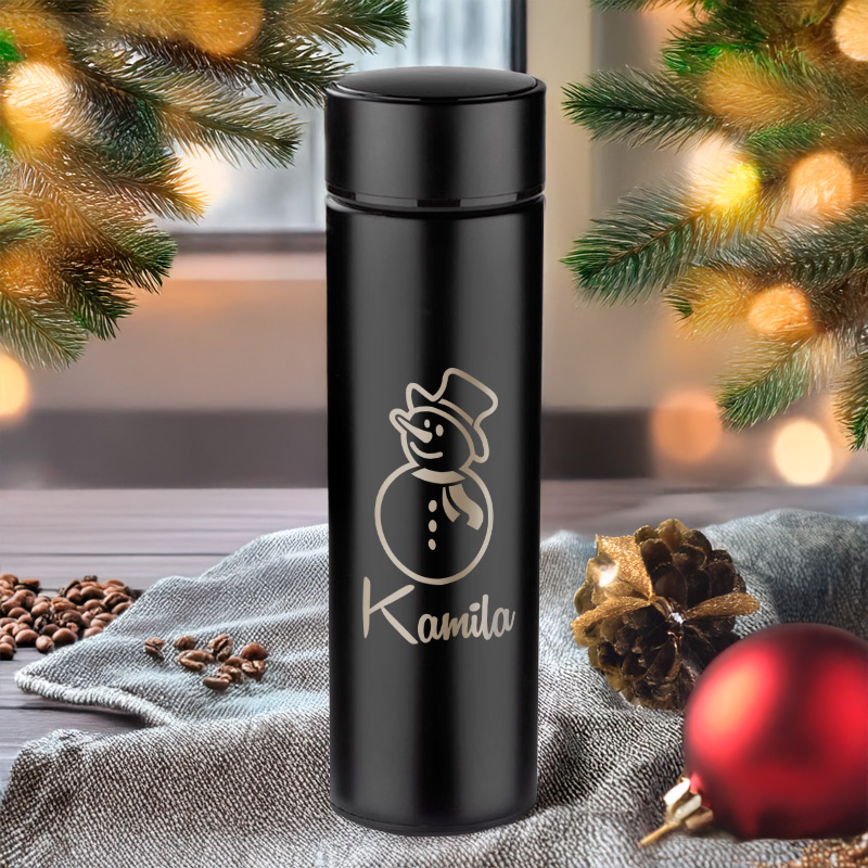 Kubek Termiczny LED z Grawerem na Święta - Prezent Na Święta - Bałwan