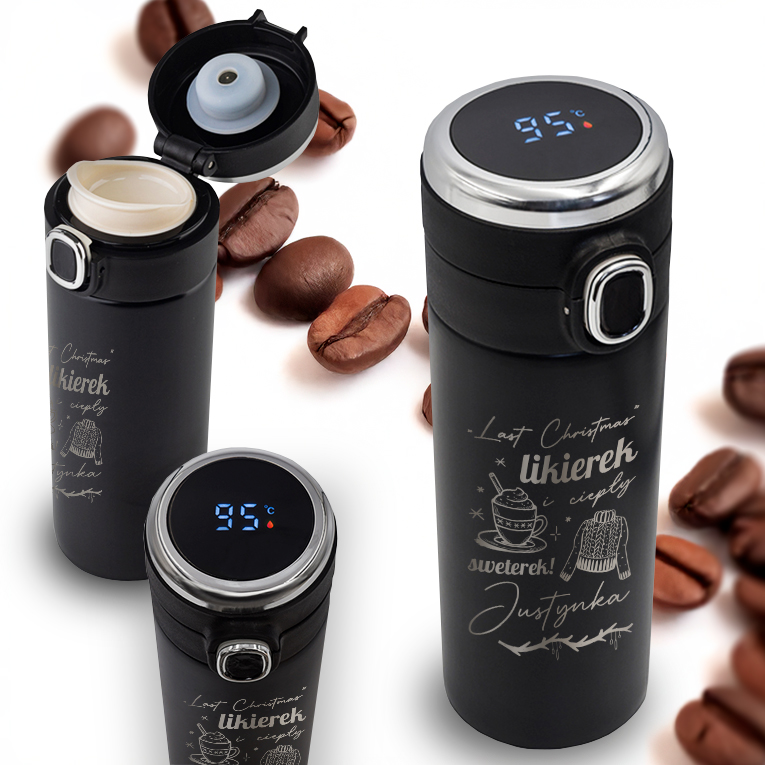 KUBEK TERMICZNY LED Z GRAWEREM - idealny pomysł NA PREZENT - najlepszy wybór w PODRÓŻY!