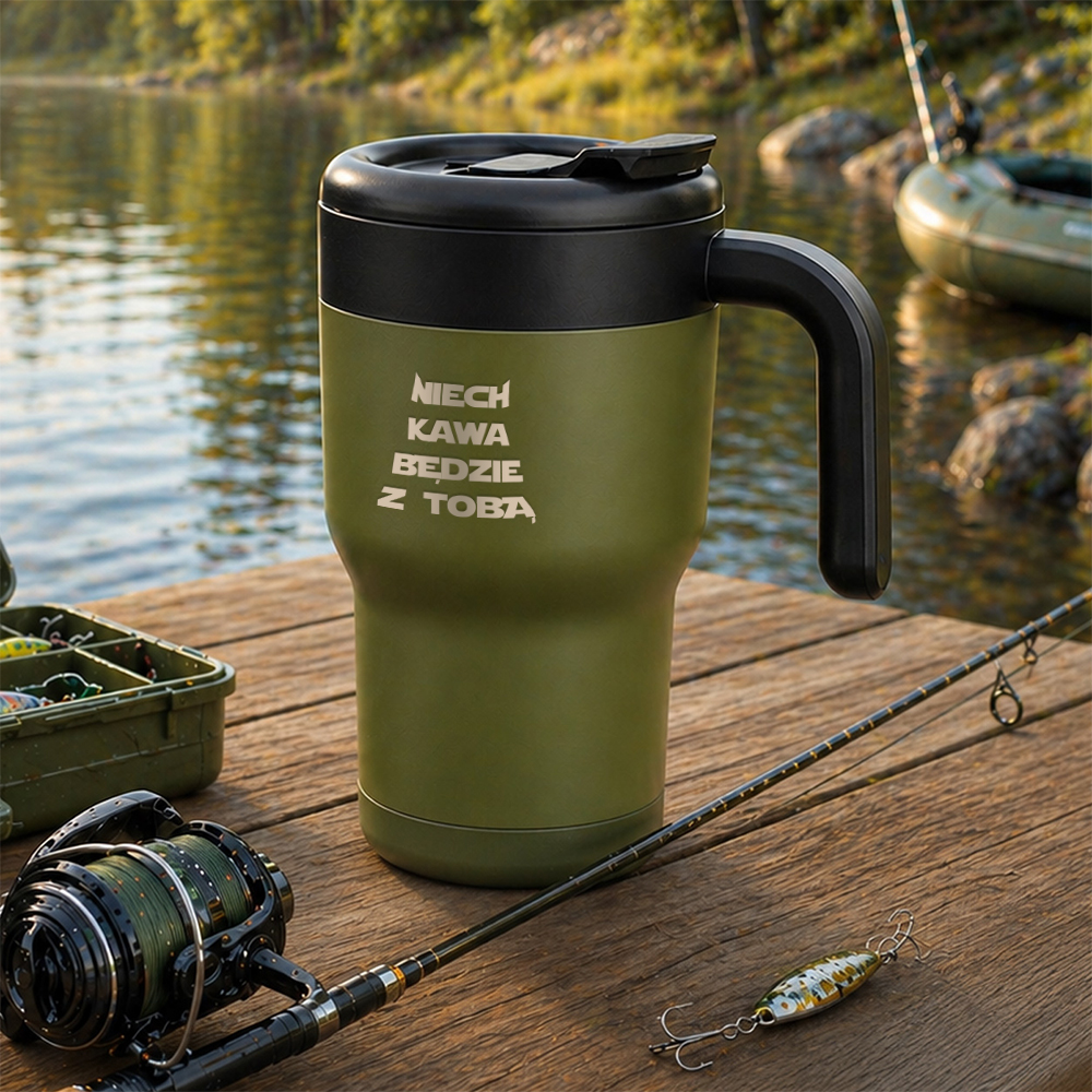 Kubek Termiczny z Grawerem - Prezent Dla Niego - Ze Słomką i Uchwytem - Niech Kawa Będzie z Tobą