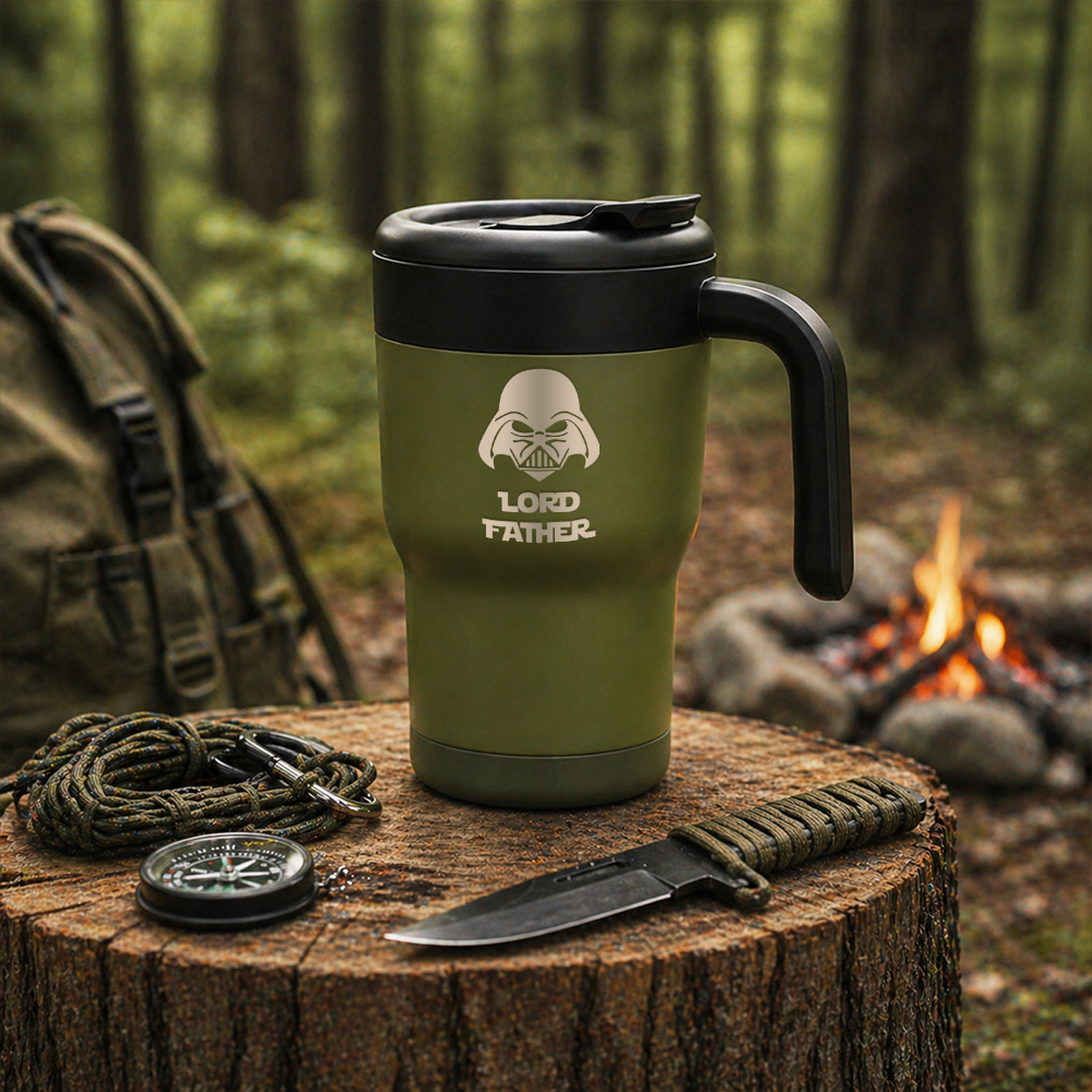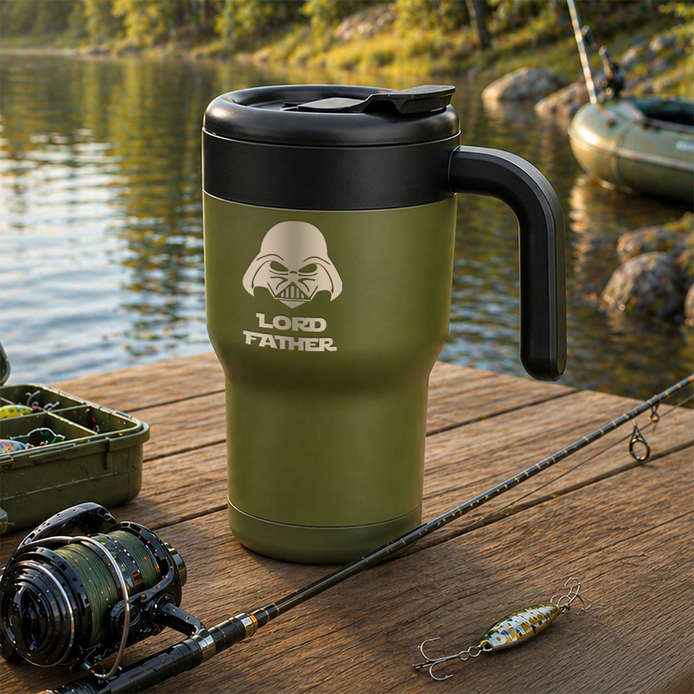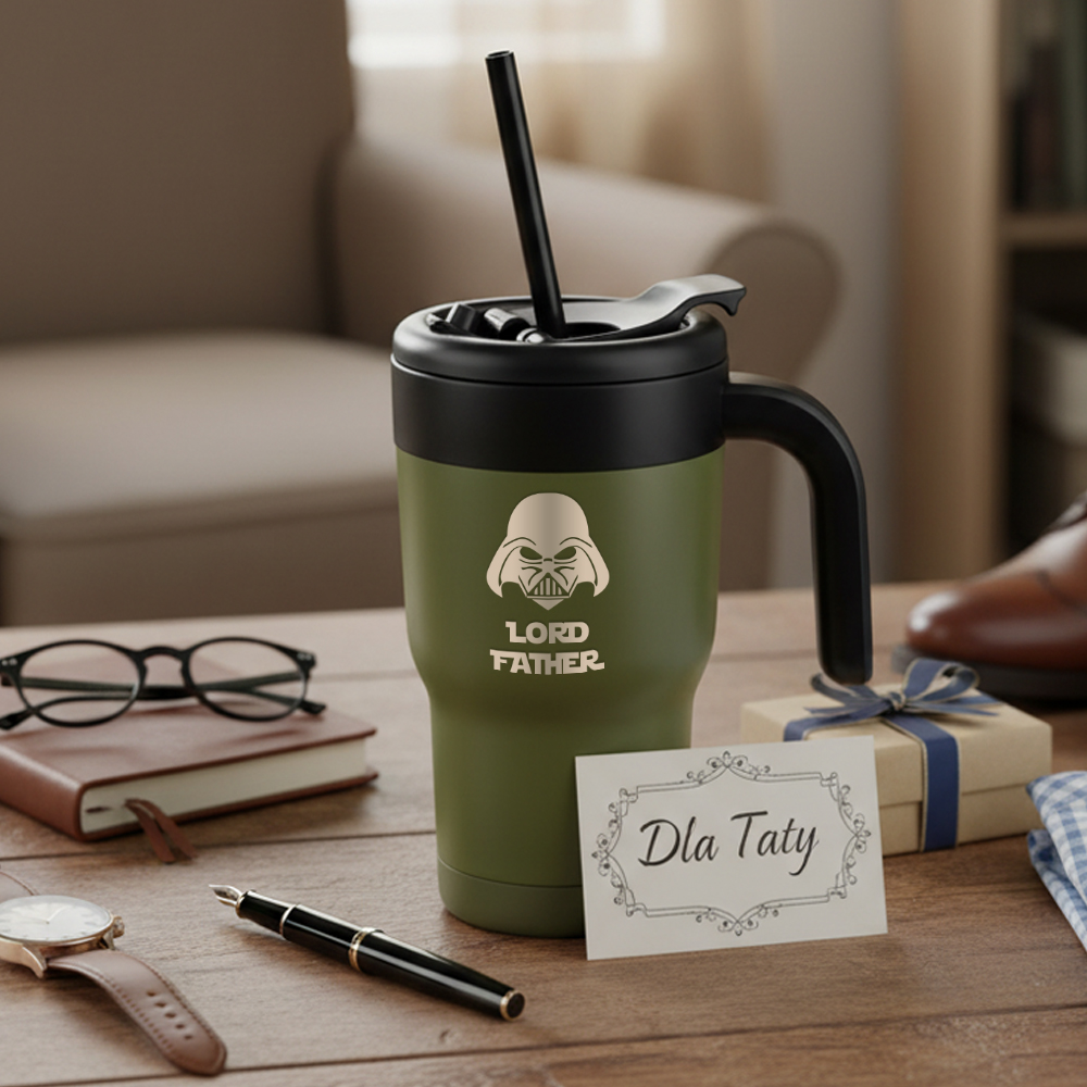 Kubek Termiczny z Grawerem dla Taty - Prezent na Dzień Ojca - Ze Słomką i Uchwytem - Lord Father