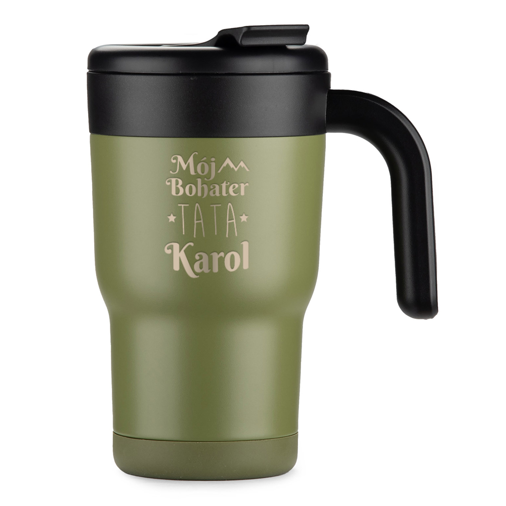 Kubek Termiczny z Grawerem dla Taty - Prezent na Dzień Ojca - Ze Słomką i Uchwytem - Mój Bohater
