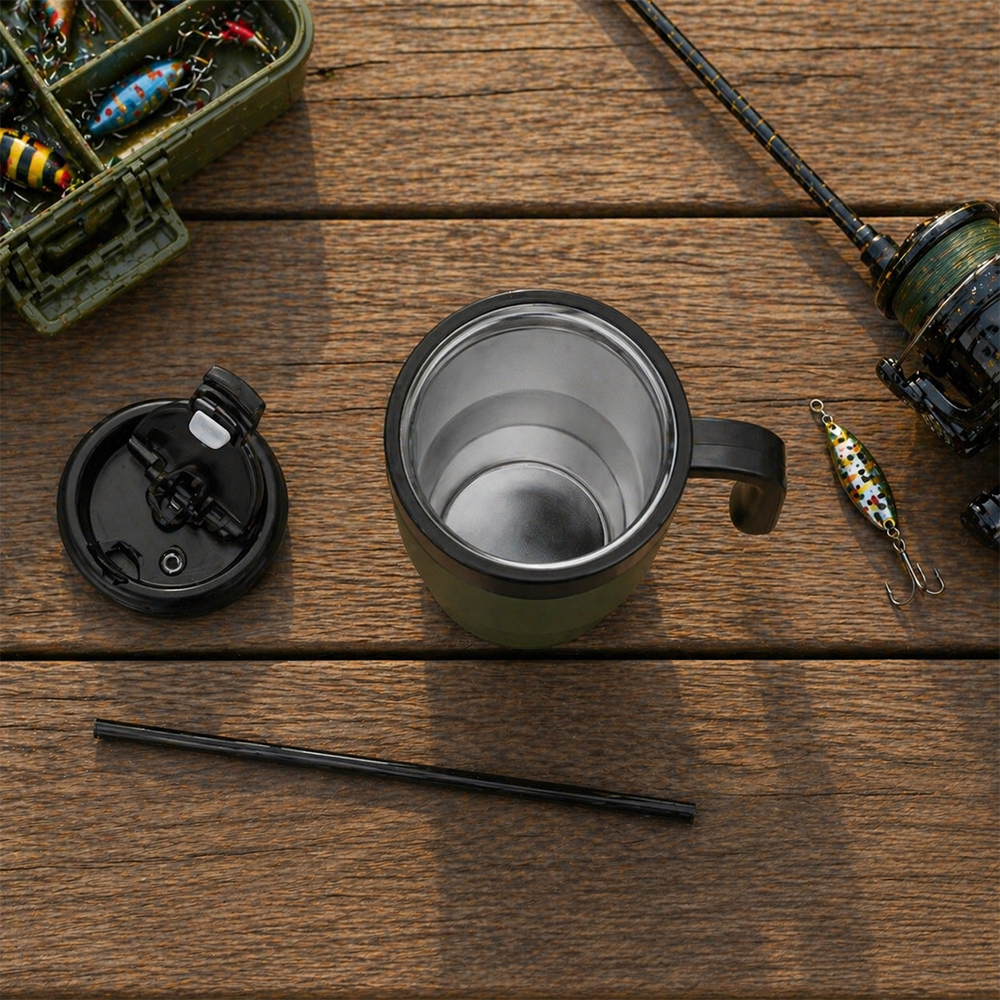 - Wygoda i Ergonomia: Posiada poręczny uchwyt, klasyczny ustnik oraz praktyczne miejsce na słomkę z elastyczną zatyczką. Gumowa, antypoślizgowa podstawa zapewnia stabilność na różnych powierzchniach.