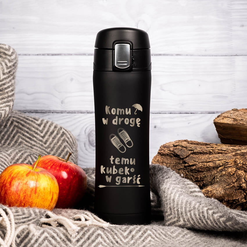 Kubek Termiczny z Grawerem na Prezent - Kubek dla Podróżnika - Komu w Drogę Temu Kubek W Garść - Zamykany