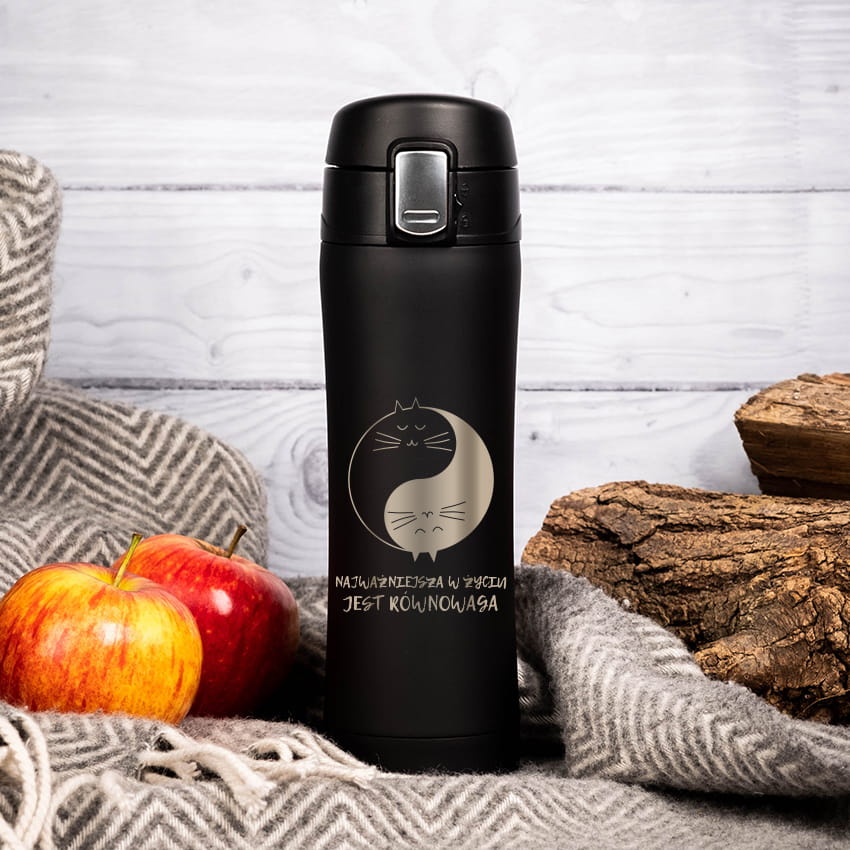 Szukasz praktycznego prezentu okolicznościowego? Wybierz oryginalny kubek termiczny z grawerem Najważniejsza W Życiu Jest Równowaga.