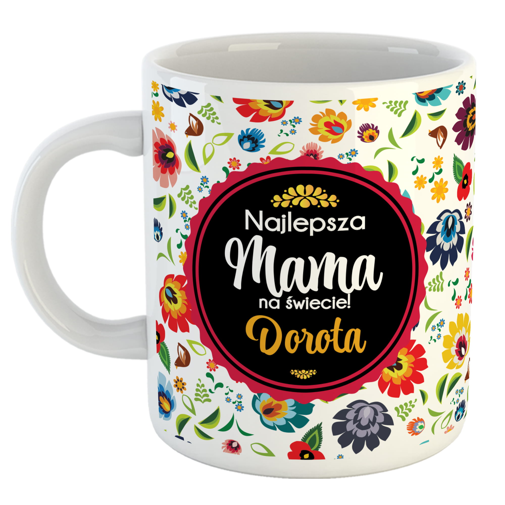 - Każdy kubek zdobi urocza grafika, która sprawi, że codzienna kawa czy herbata nabiorą jeszcze lepszego smaku. Pamiętaj, aby przy składaniu zamówienia podać imię mamy!