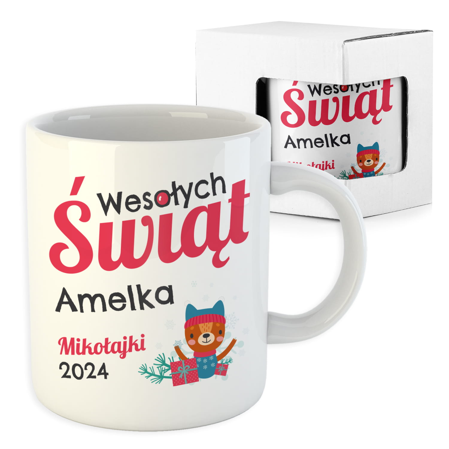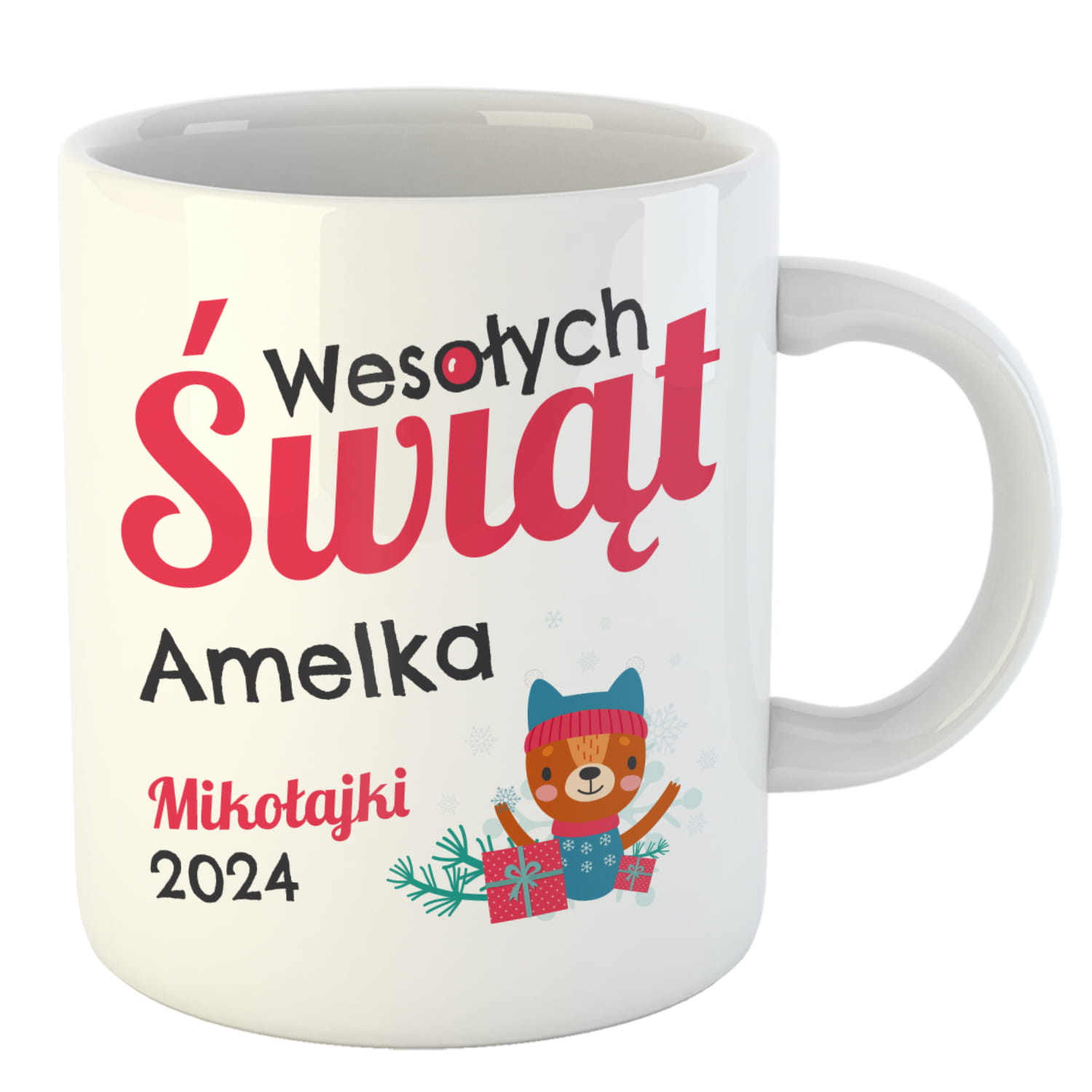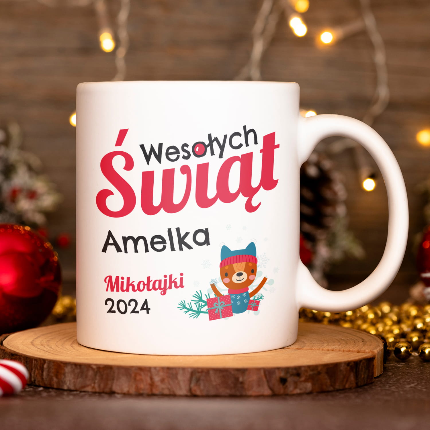 Kubek na Mikołajki w Szkole z Imieniem - Kubek Świąteczny na Prezent - Króliczek