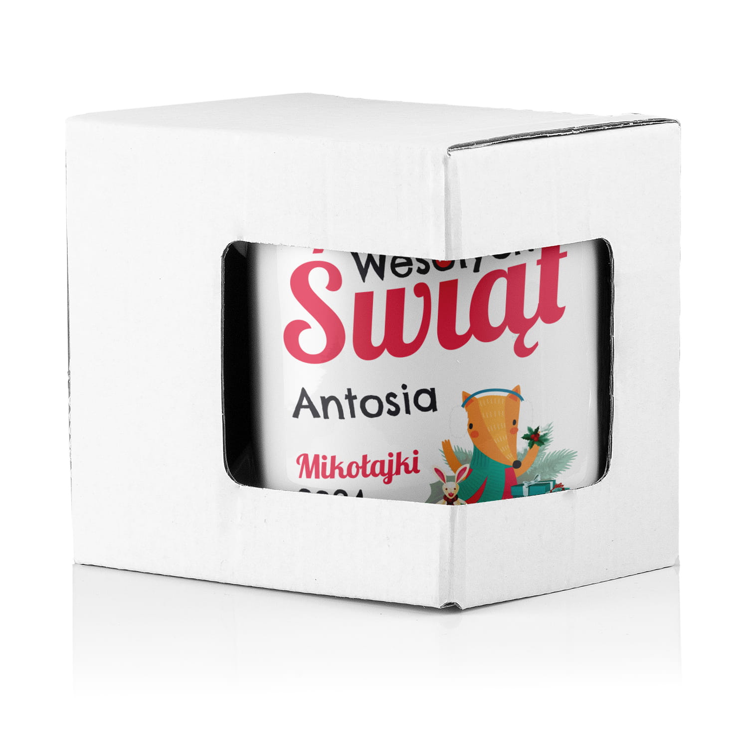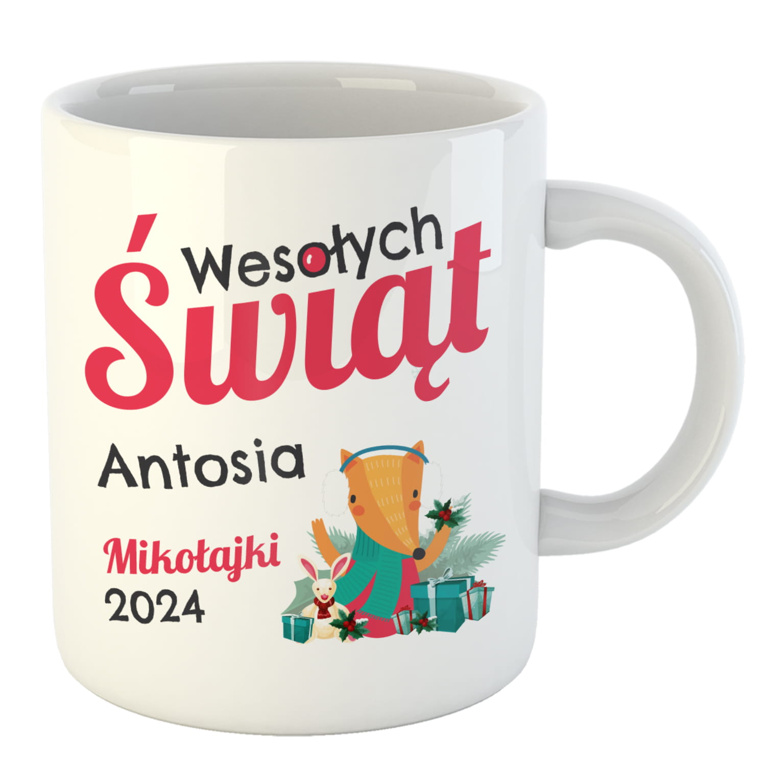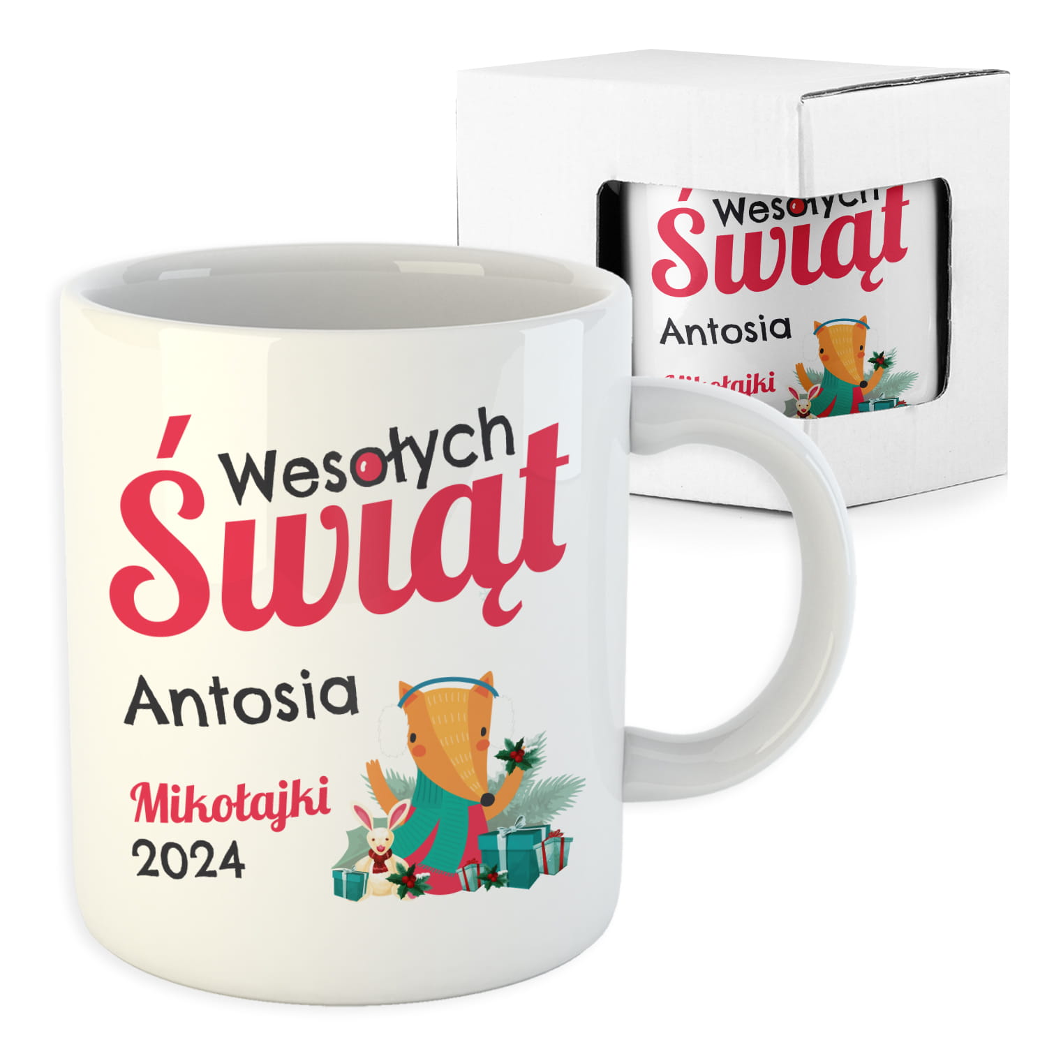 Kubek na Mikołajki w Szkole z Imieniem - Kubek Świąteczny na Prezent - Lisek