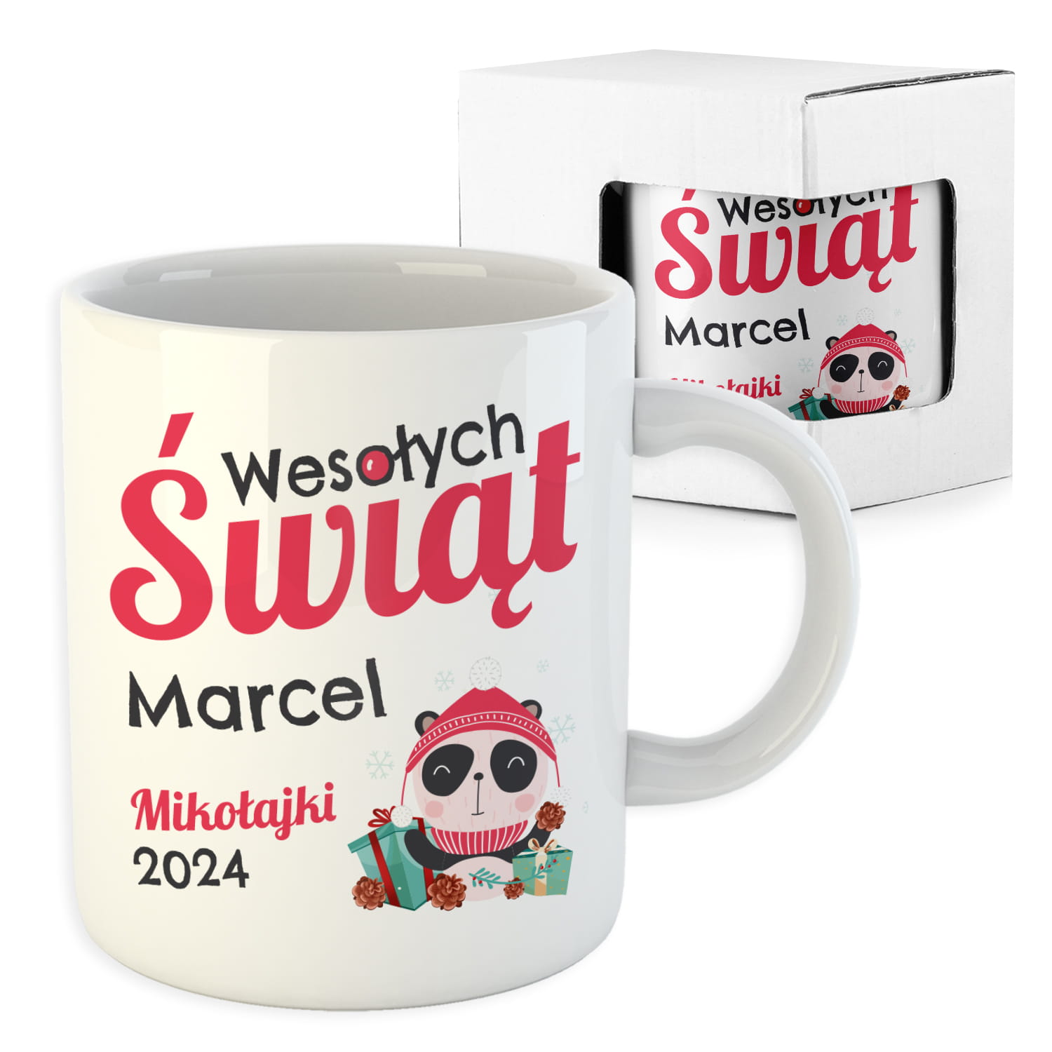 Kubek na Mikołajki w Szkole z Imieniem - Kubek Świąteczny na Prezent - Panda