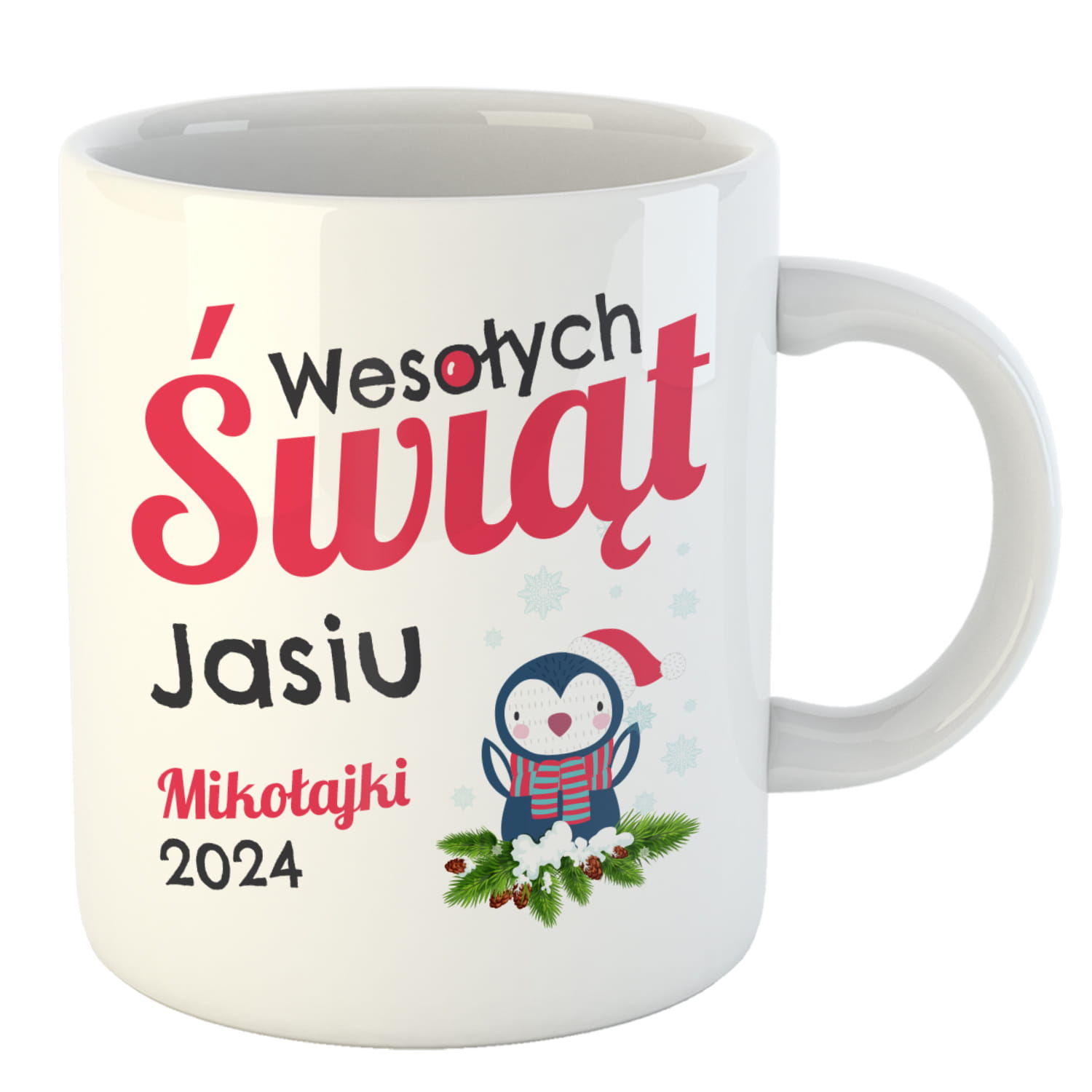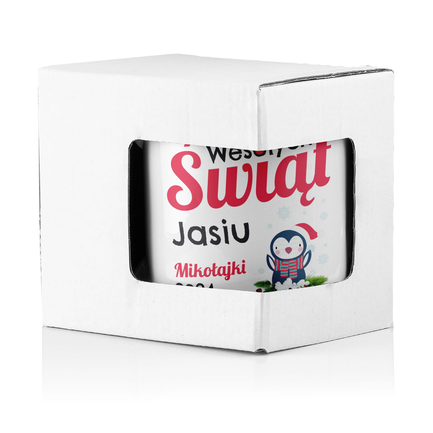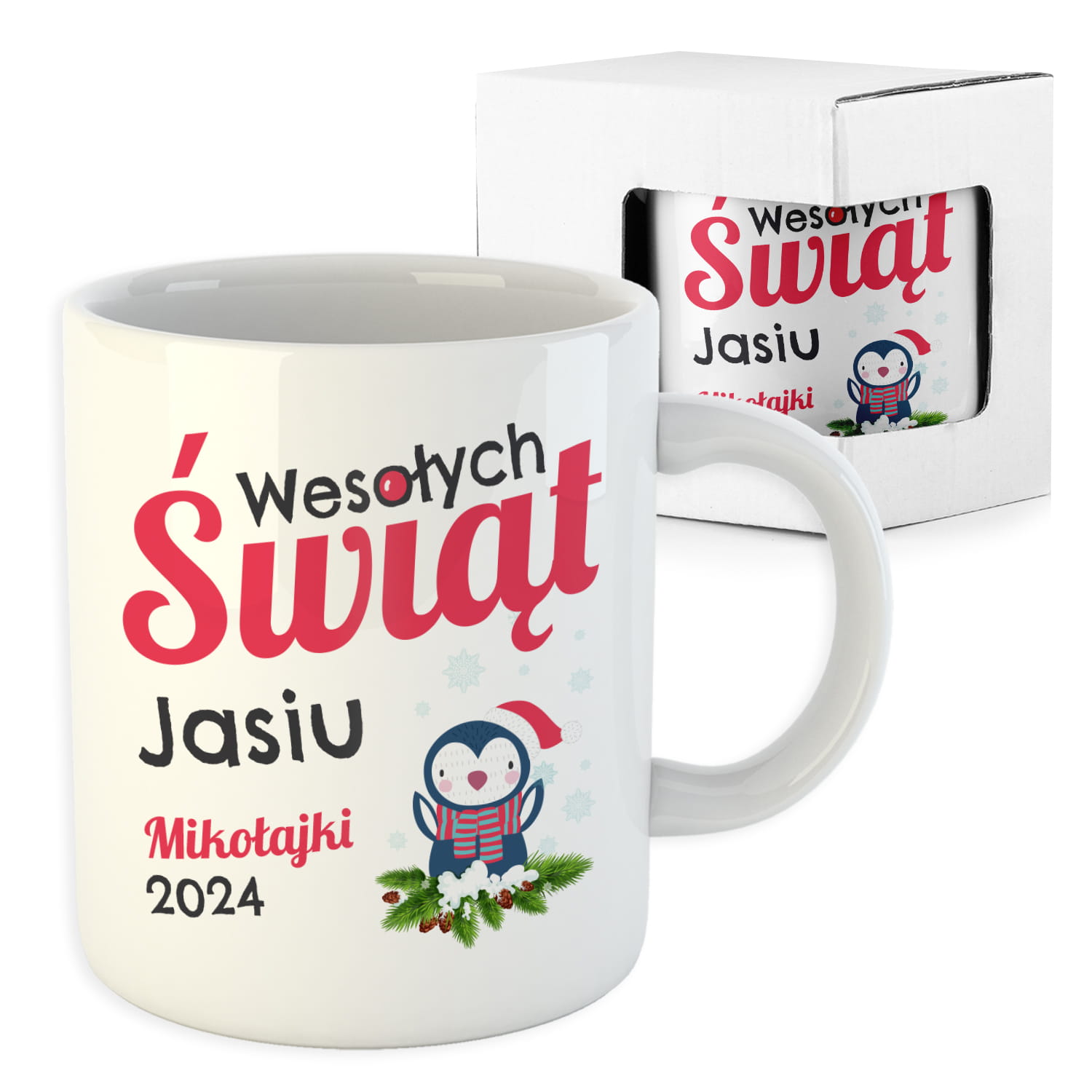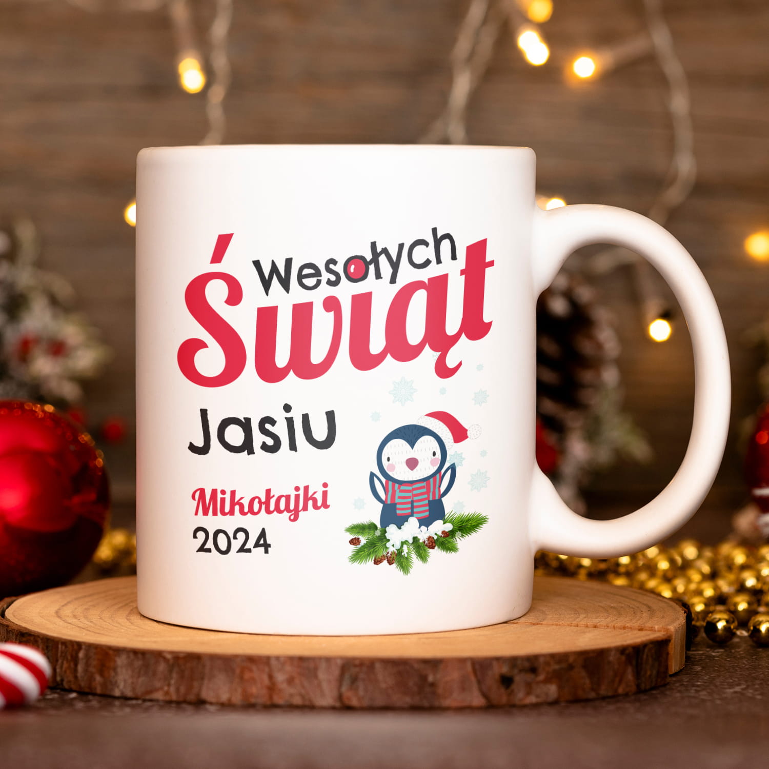 Kubek na Mikołajki w Szkole z Imieniem - Kubek Świąteczny na Prezent - Pingwinek