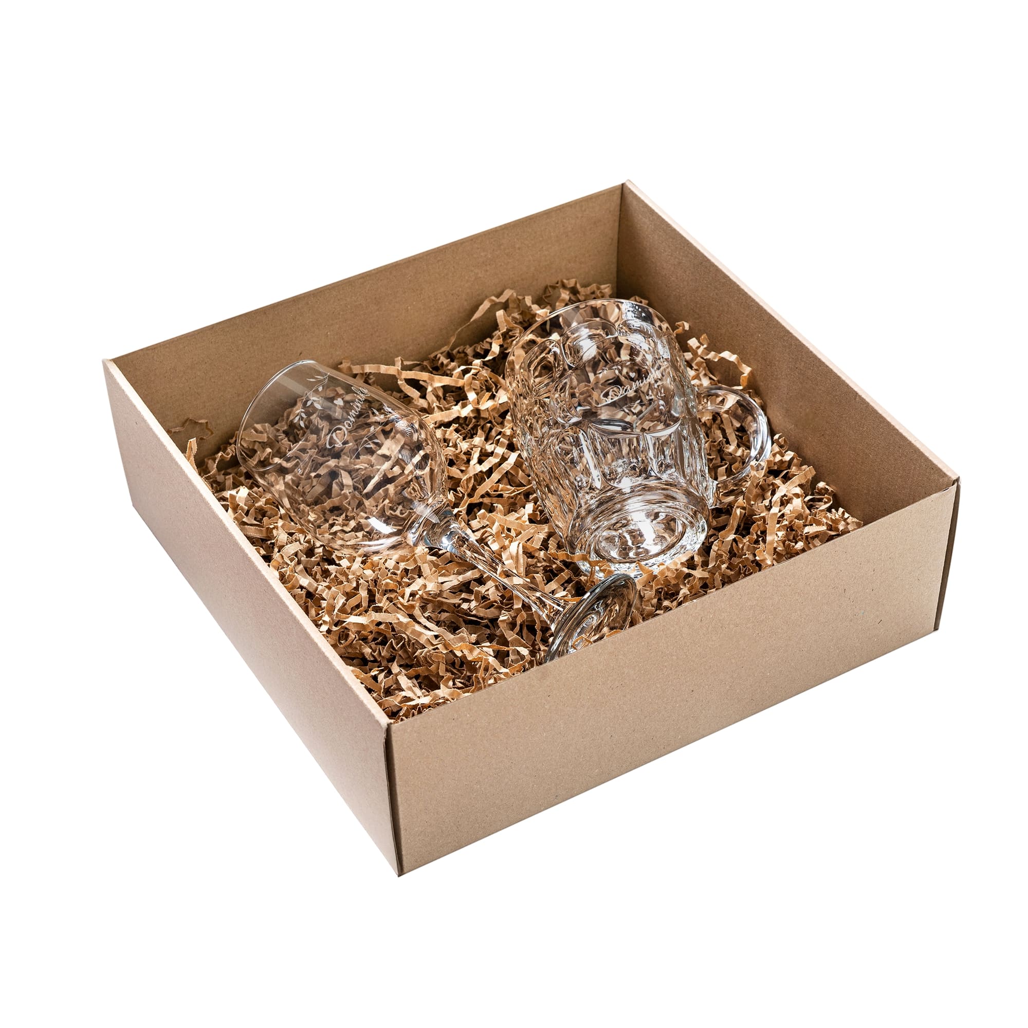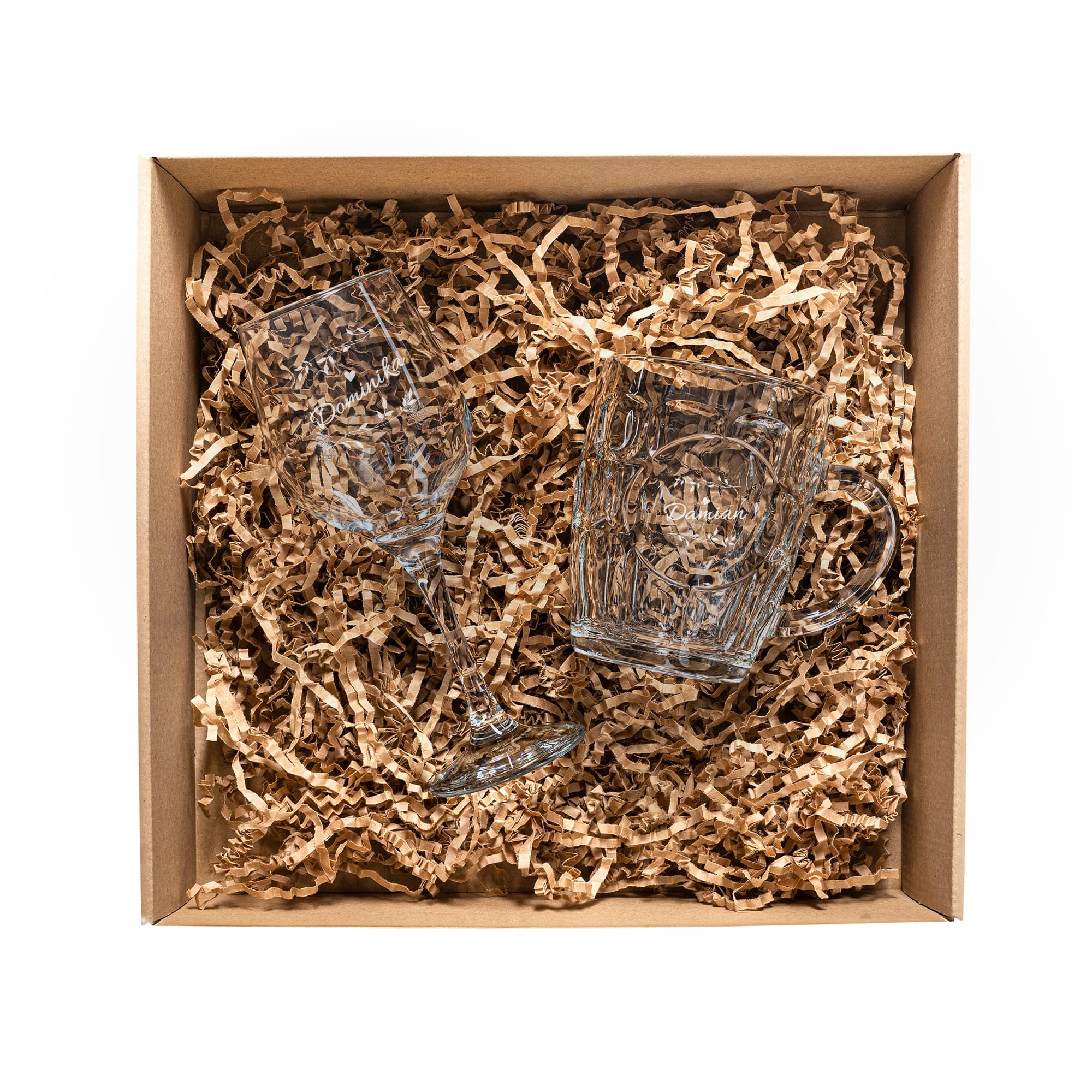 ZESTAW PREZENTOWY W PUDEŁKU – KUFEL I KIELISZEK DO WINA Z GRAWEREM PREZENT DLA MĘŻA I ŻONY - PREZENT DLA PARY