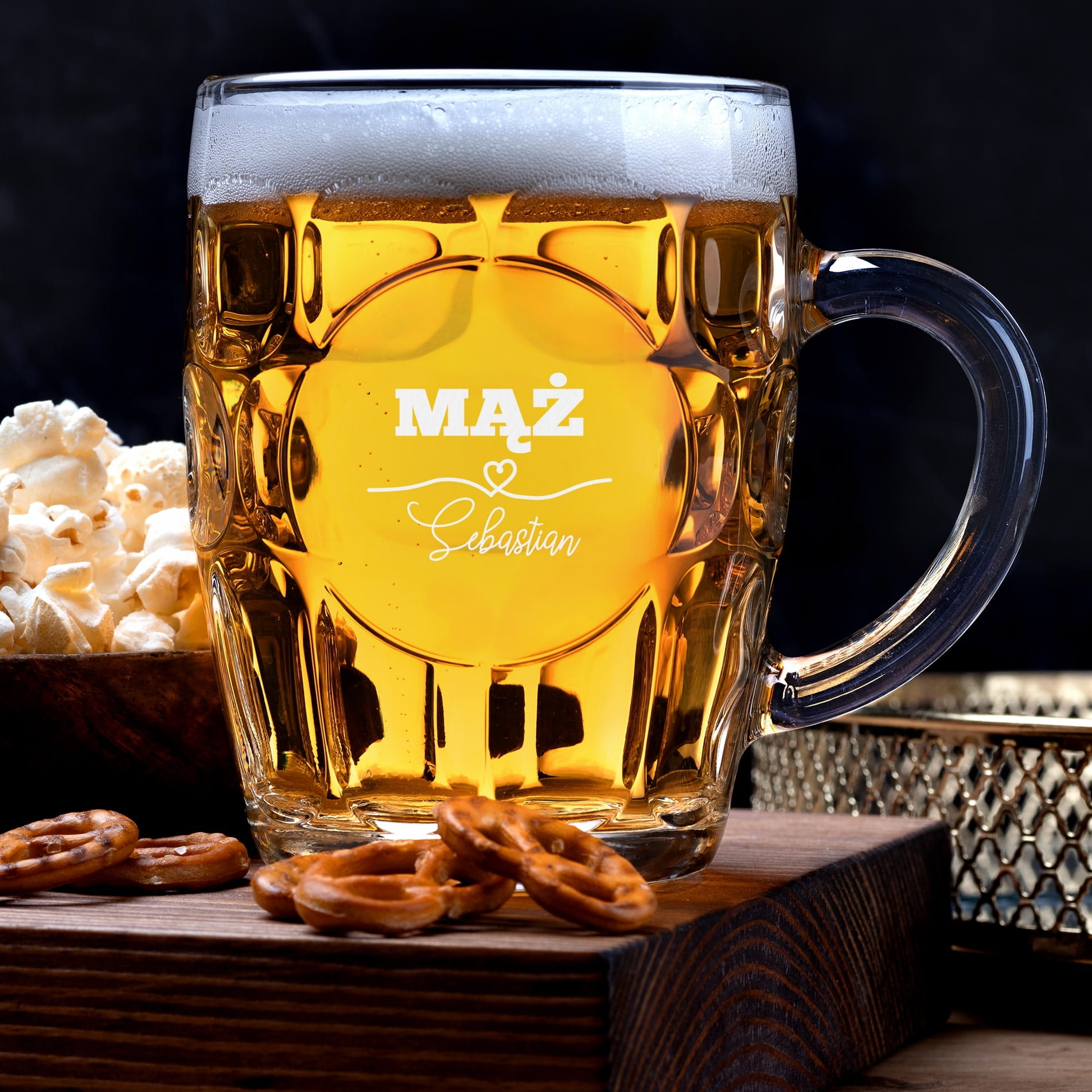 ⭐ Elegancki kufel do piwa to idealny pomysł na personalizowany prezent! Wykonany z wysokiej jakości, solidnego szkła o klasycznym designie, doskonale sprawdzi się na każdą okazję. Na środku kufla widnieje subtelny, ale wyrazisty grawer, który sprawia, że kufel jest wyjątkowy pod każdym względem!