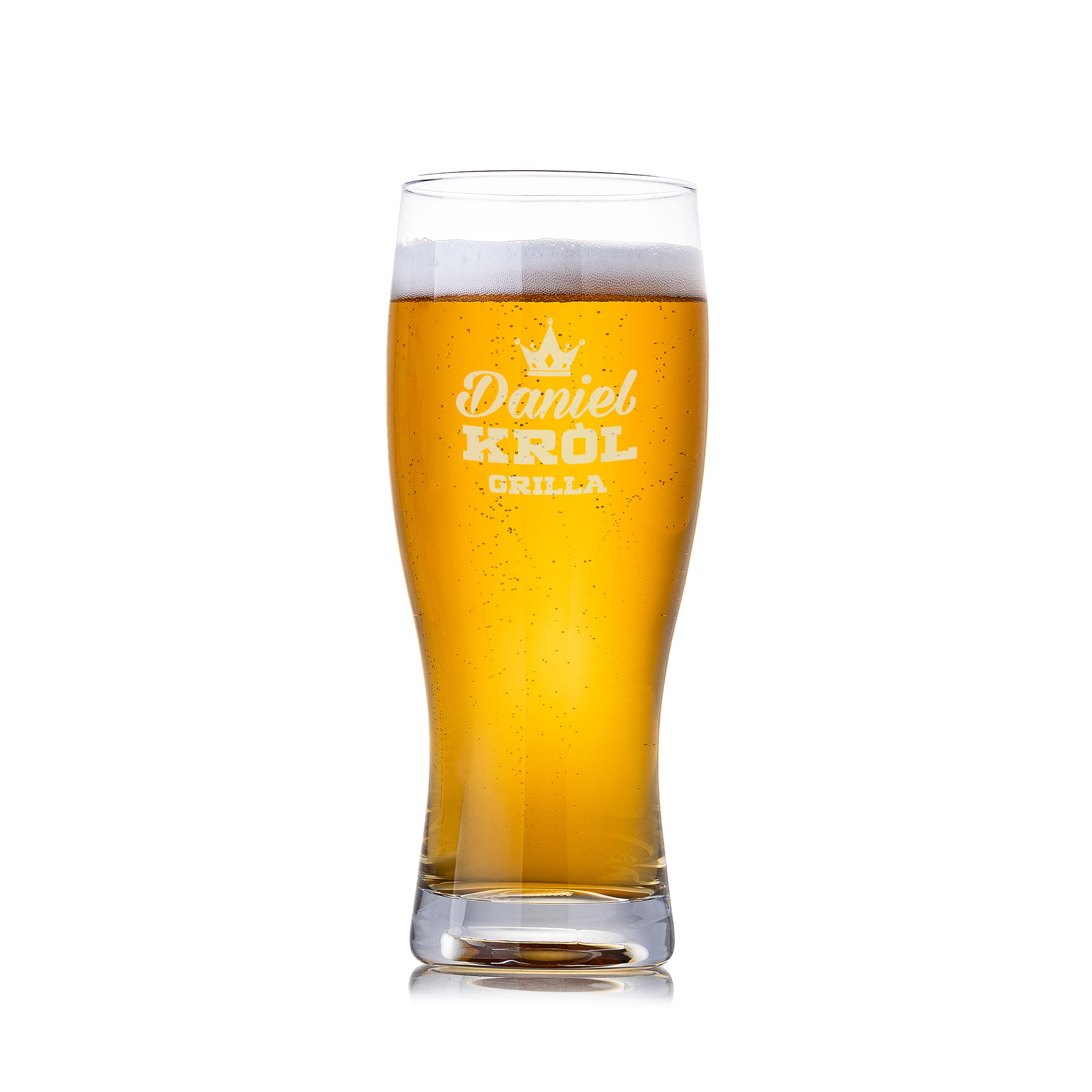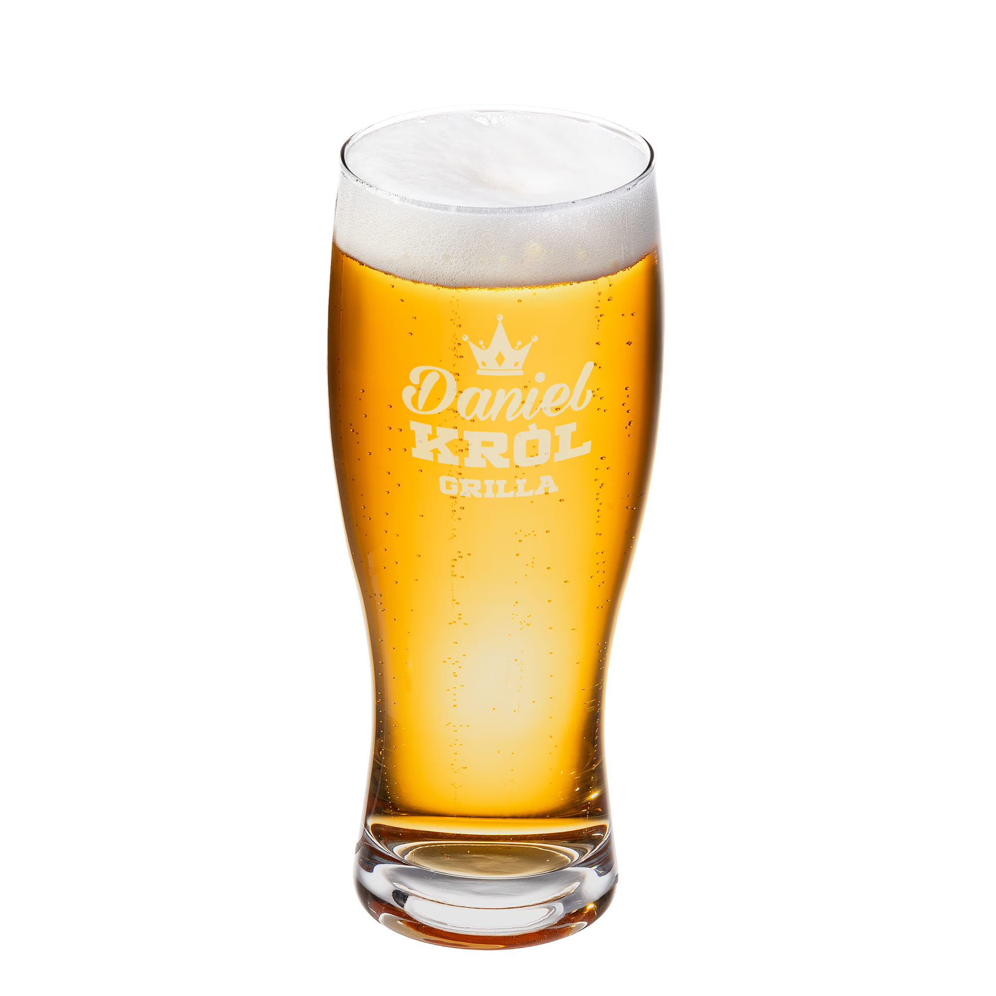 Kufel Grillowy Do Piwa z Grawerem - Prezent z Imieniem na Majówkę - Wysoki Kufel Barowy - Król Grilla