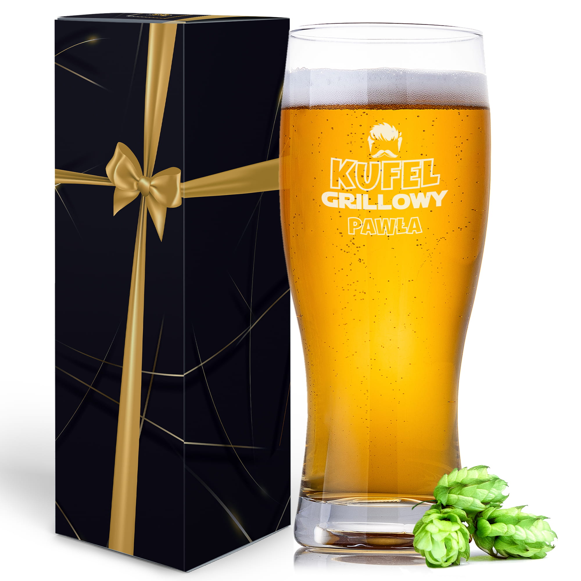 Kufel Grillowy Do Piwa z Grawerem - Prezent z Imieniem na Majówkę - Wysoki Kufel Barowy - Kufel Grillowy