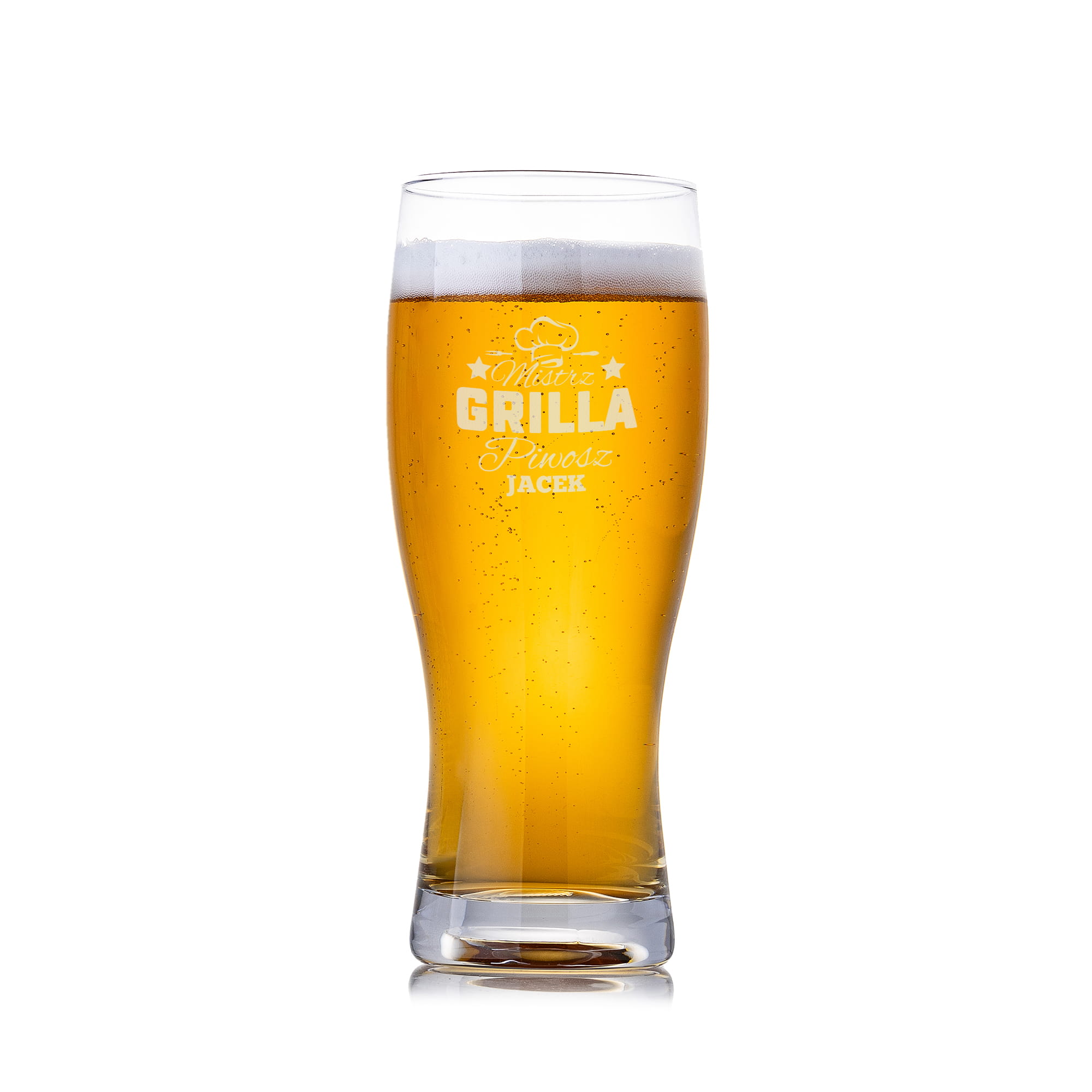 Kufel Grillowy Do Piwa z Grawerem - Prezent z Imieniem na Majówkę - Wysoki Kufel Barowy - Mistrz Grilla