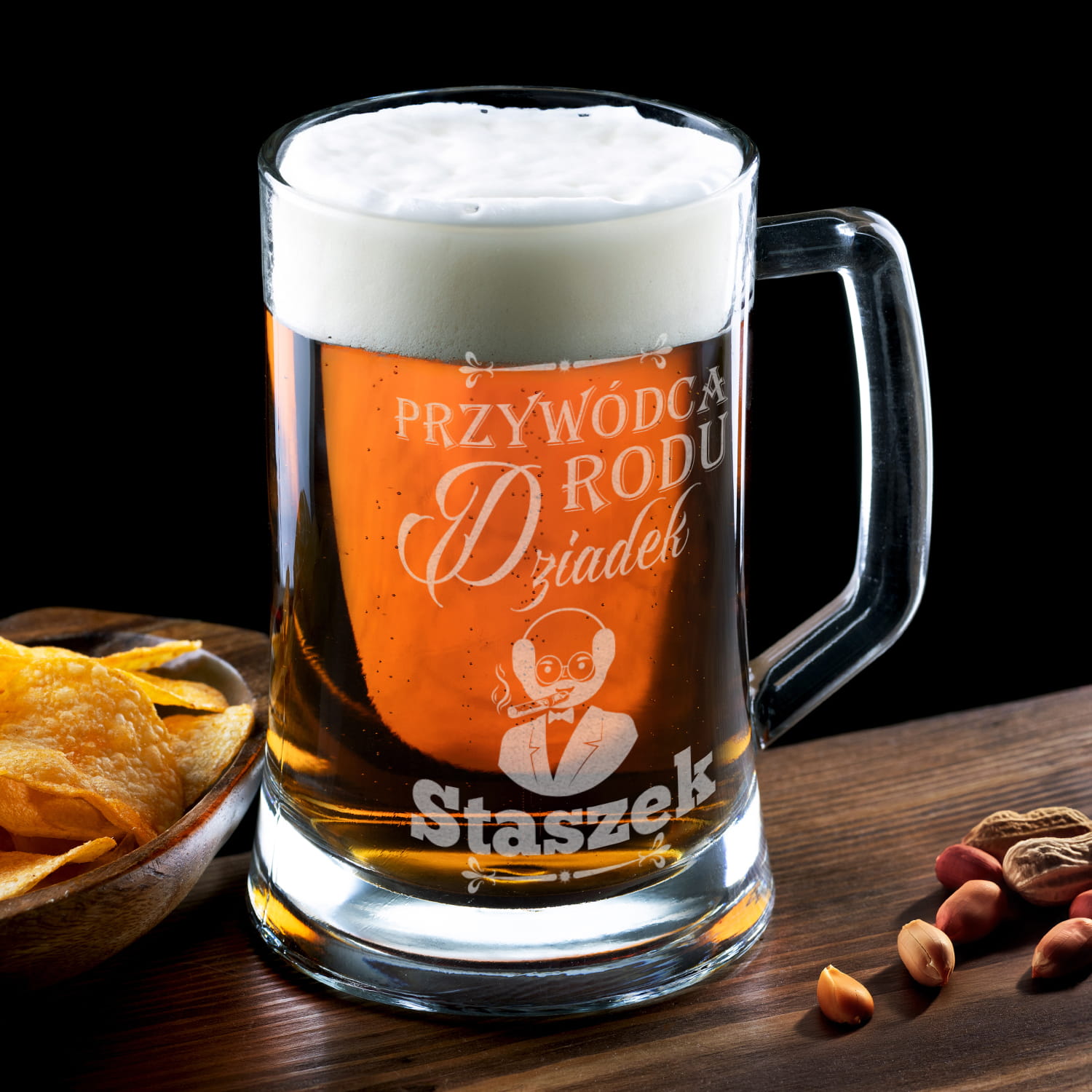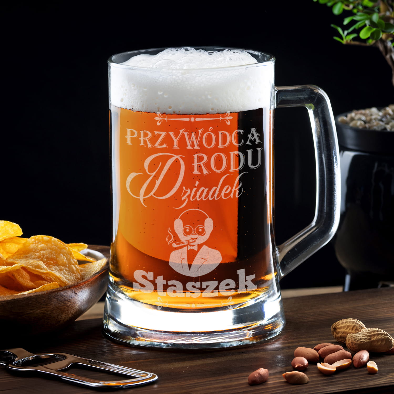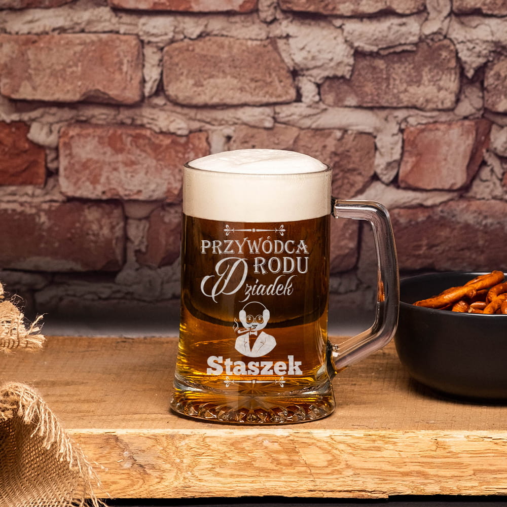 Szukasz fajnego prezentu na Dzień Dziadka? Kufel z grawerem do piwa Przywódca Rodu Dziadek na pewno mu się spodoba!