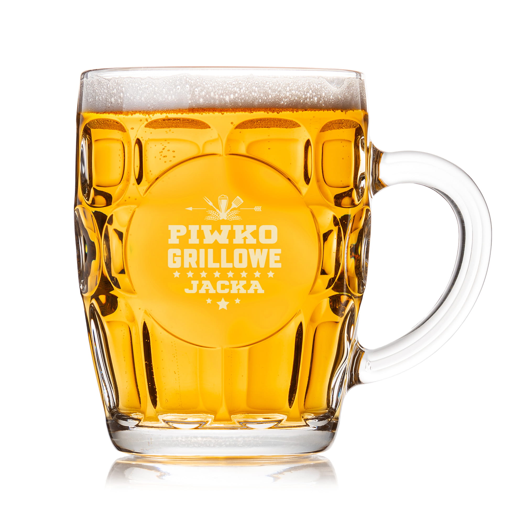 Kufel jest starannie wykonany z grubego szkła, zapewniając wygodę i trwałość. Jego pojemność jest idealna do serwowania piwa, a ergonomiczny uchwyt sprawia, że picie z niego to czysta przyjemność. Grawerowane elementy są trwałe i nie ścierają się, co zapewnia, że kufel pozostanie ozdobą przez wiele lat.