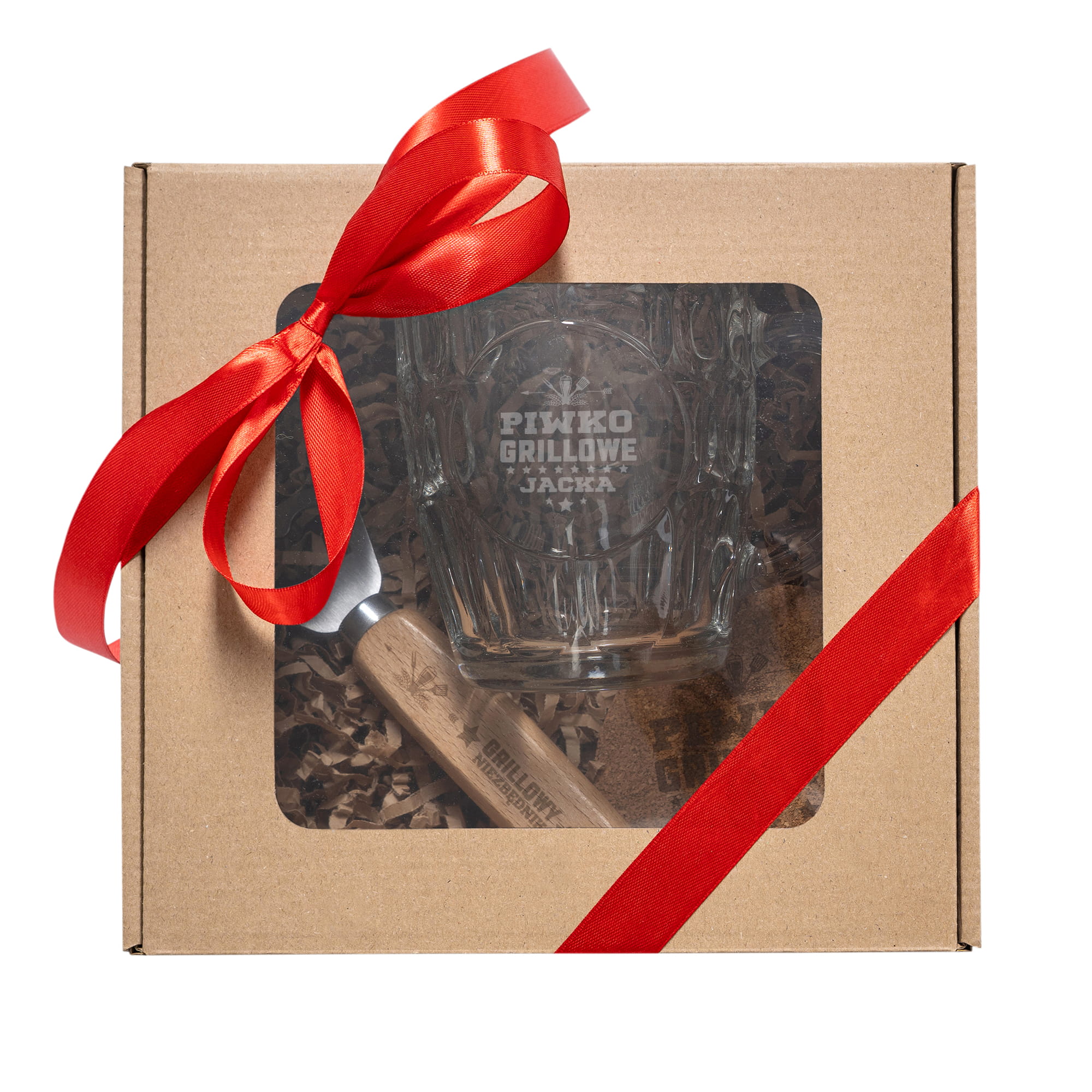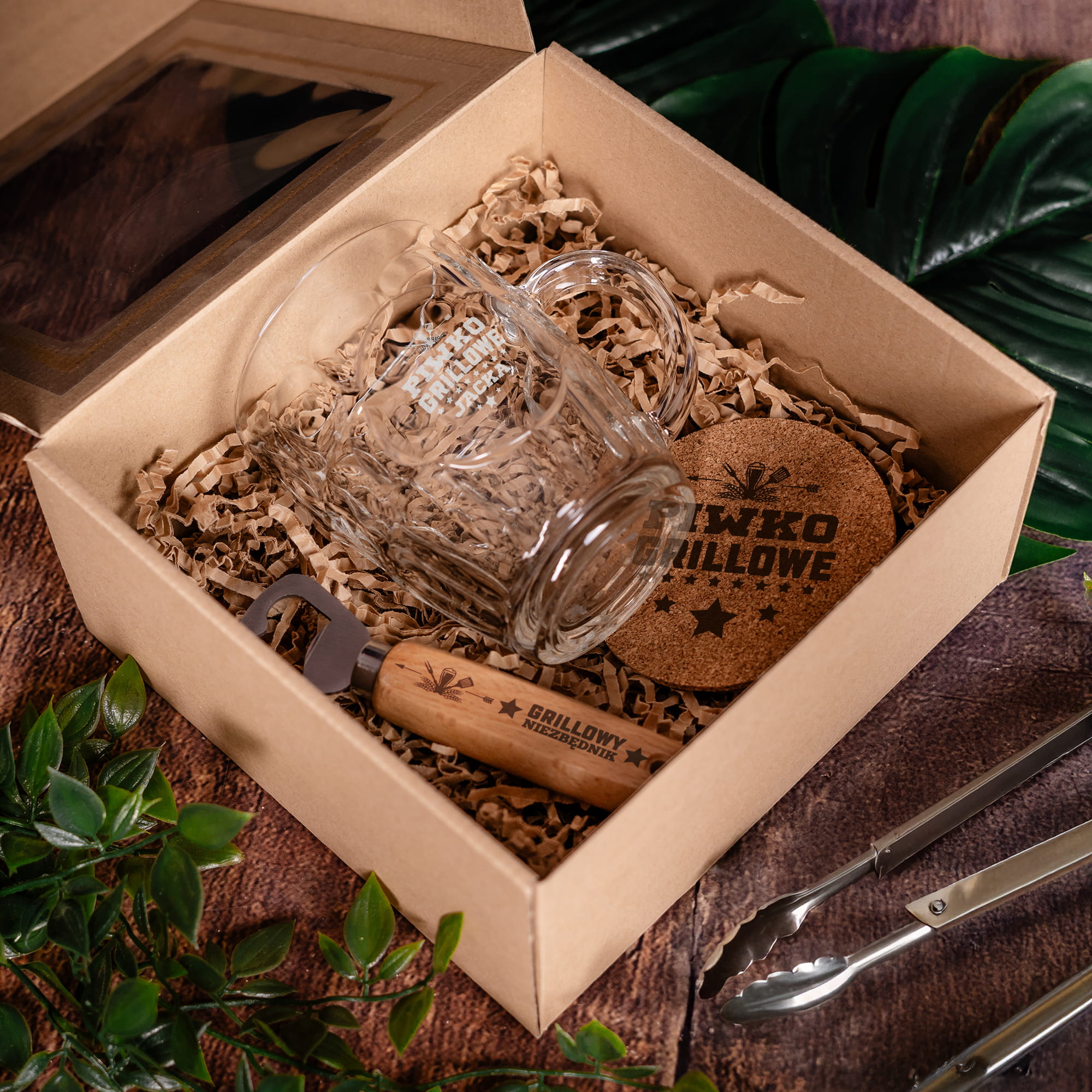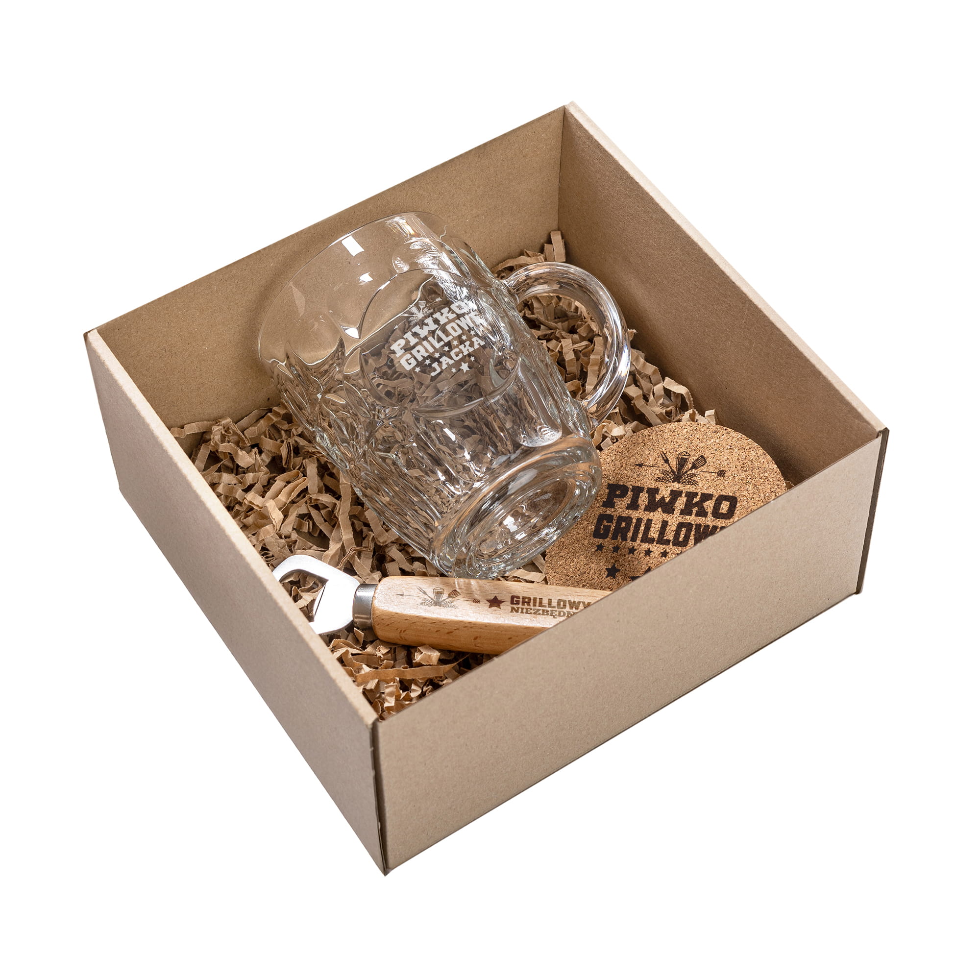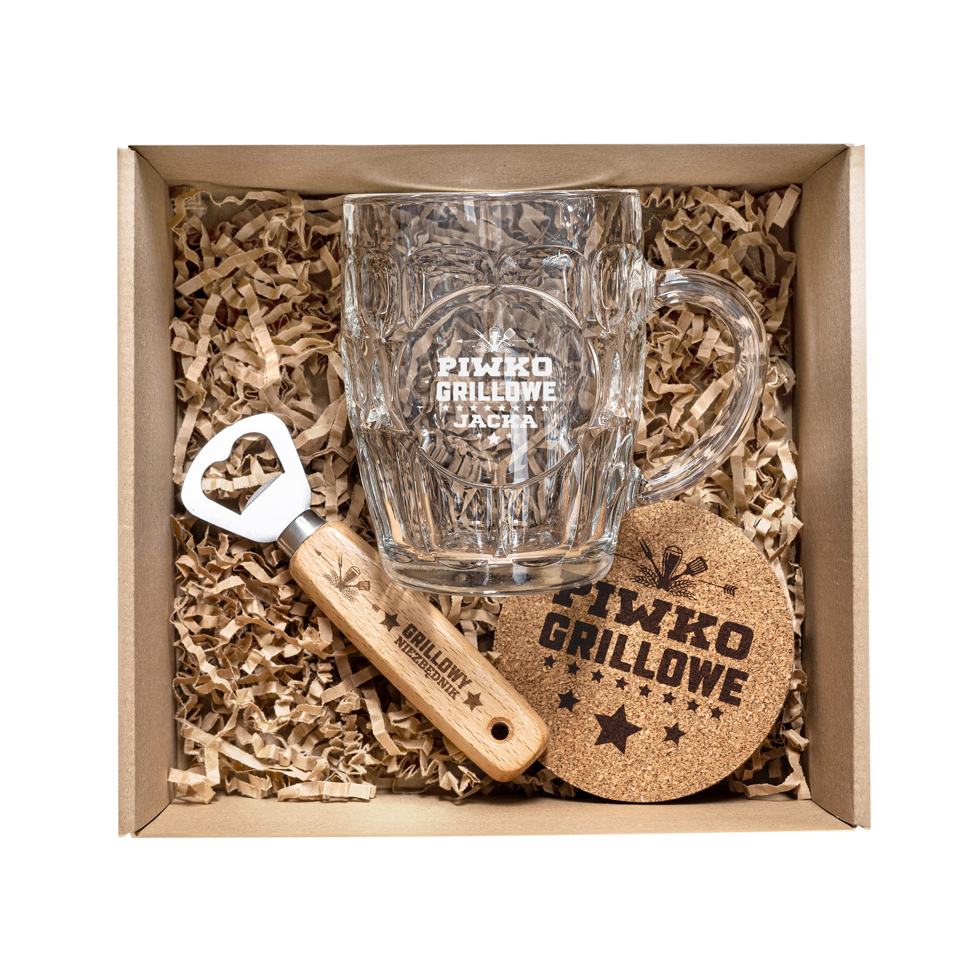 Kufel z Grawerem Do Piwa - Zestaw Grillowy na Prezent - Zestaw Prezentowy - Kufel + Podkładka + Otwieracz - Piwko Grillowe