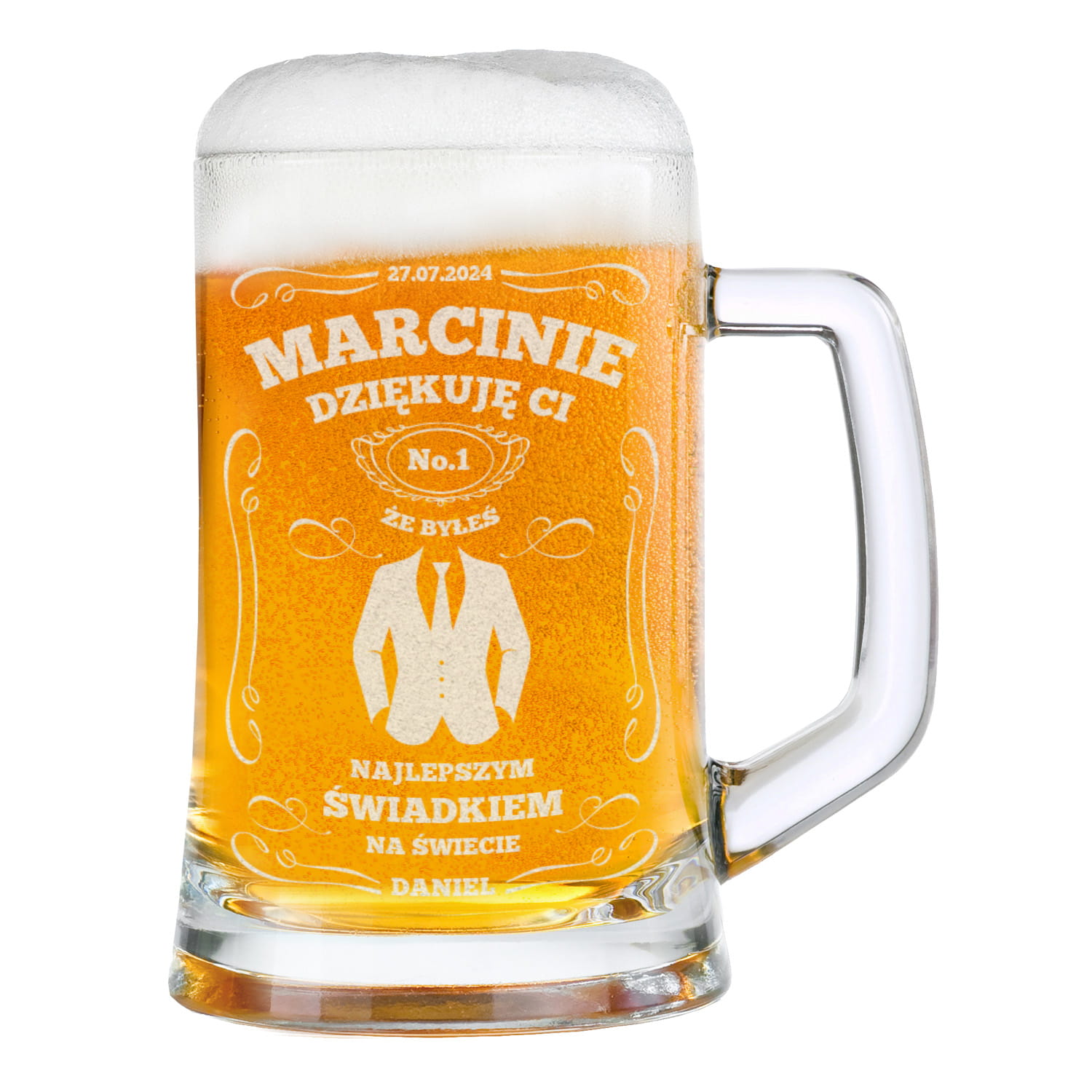 ⭐ Kufel do piwa z grawerem będzie idealnym pomysłem, aby podziękować Twojemu świadkowi za jego wsparcie w nietuzinkowy i zabawny sposób.