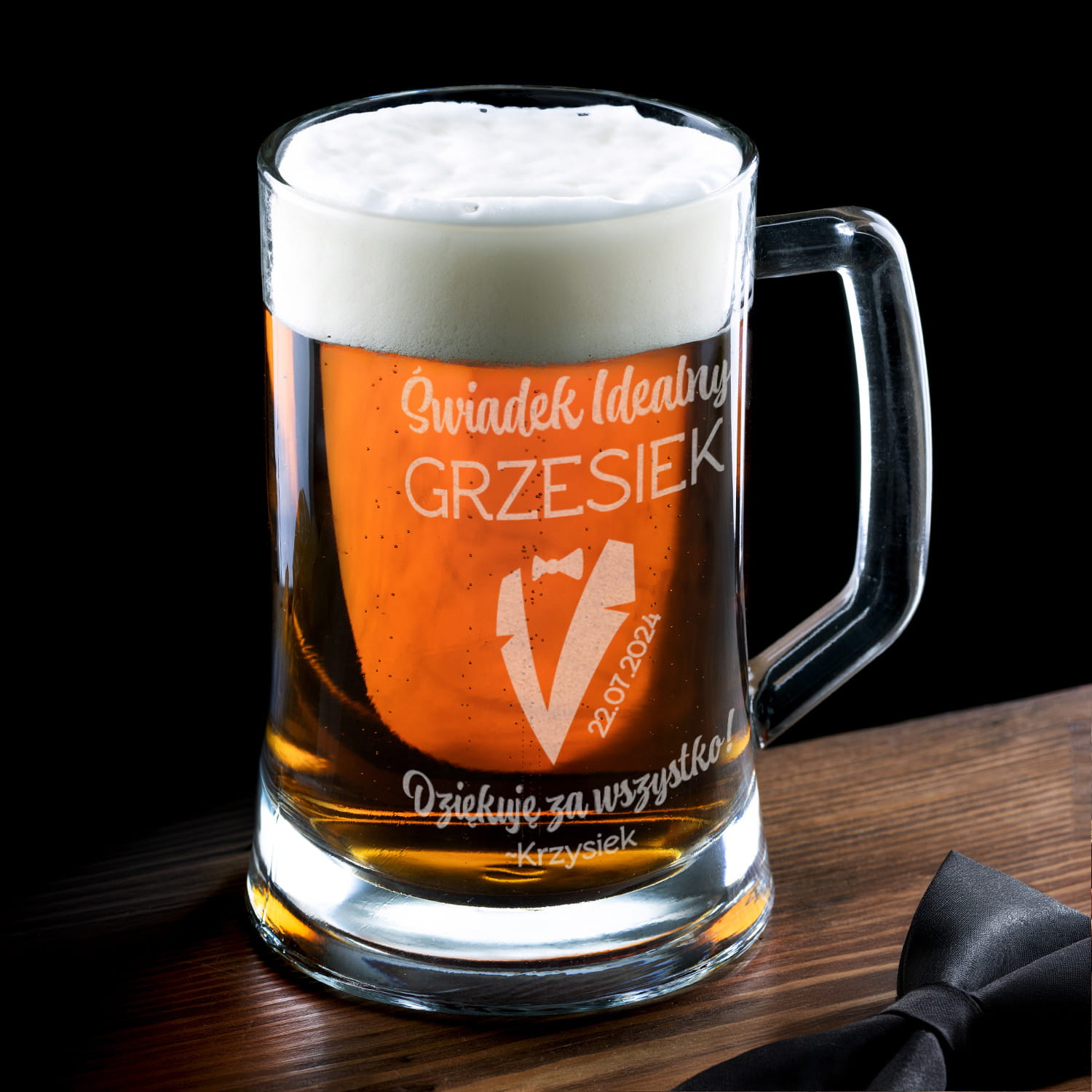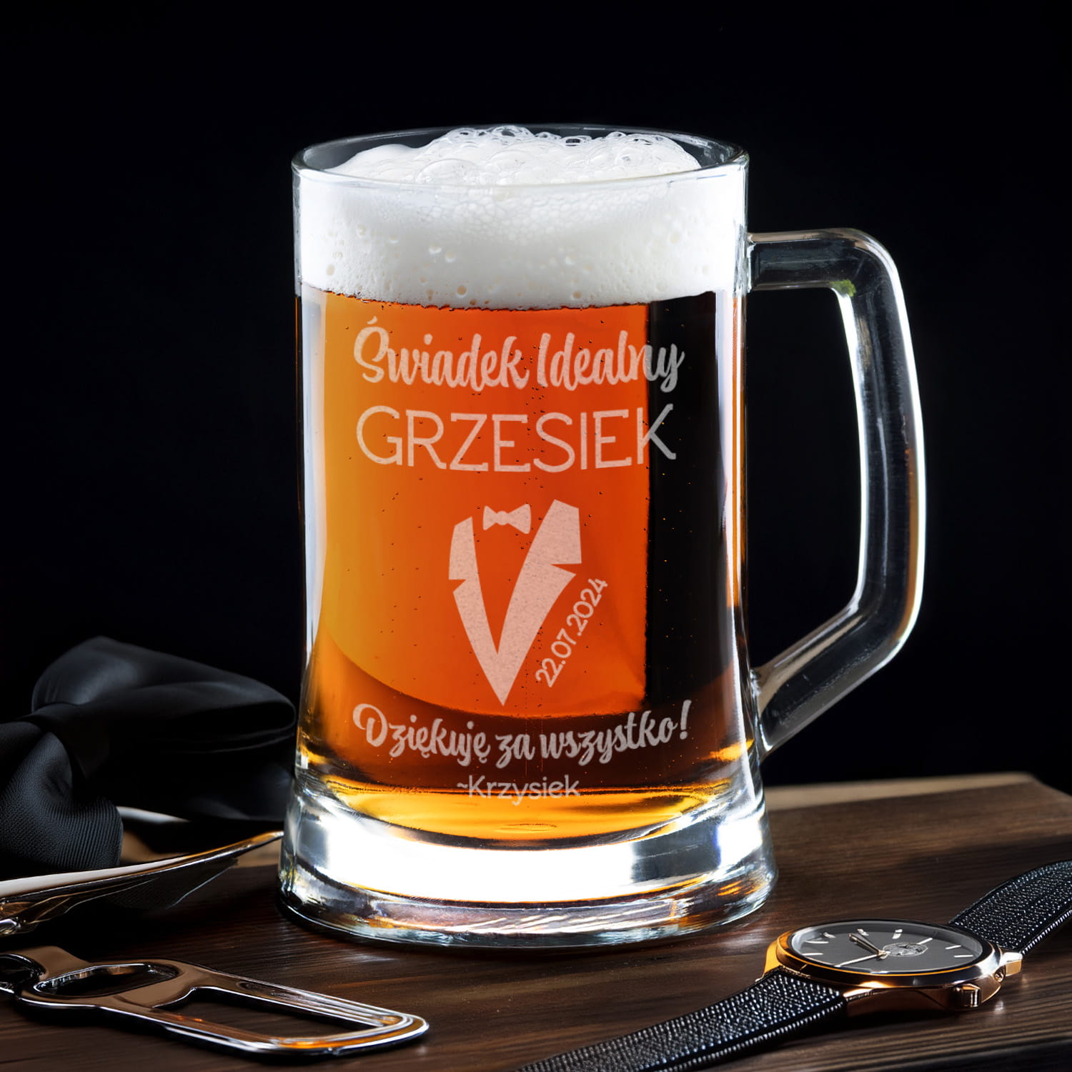⭐ Kufel do piwa z grawerem będzie idealnym pomysłem, aby podziękować Twojemu świadkowi za jego wsparcie w nietuzinkowy i zabawny sposób.