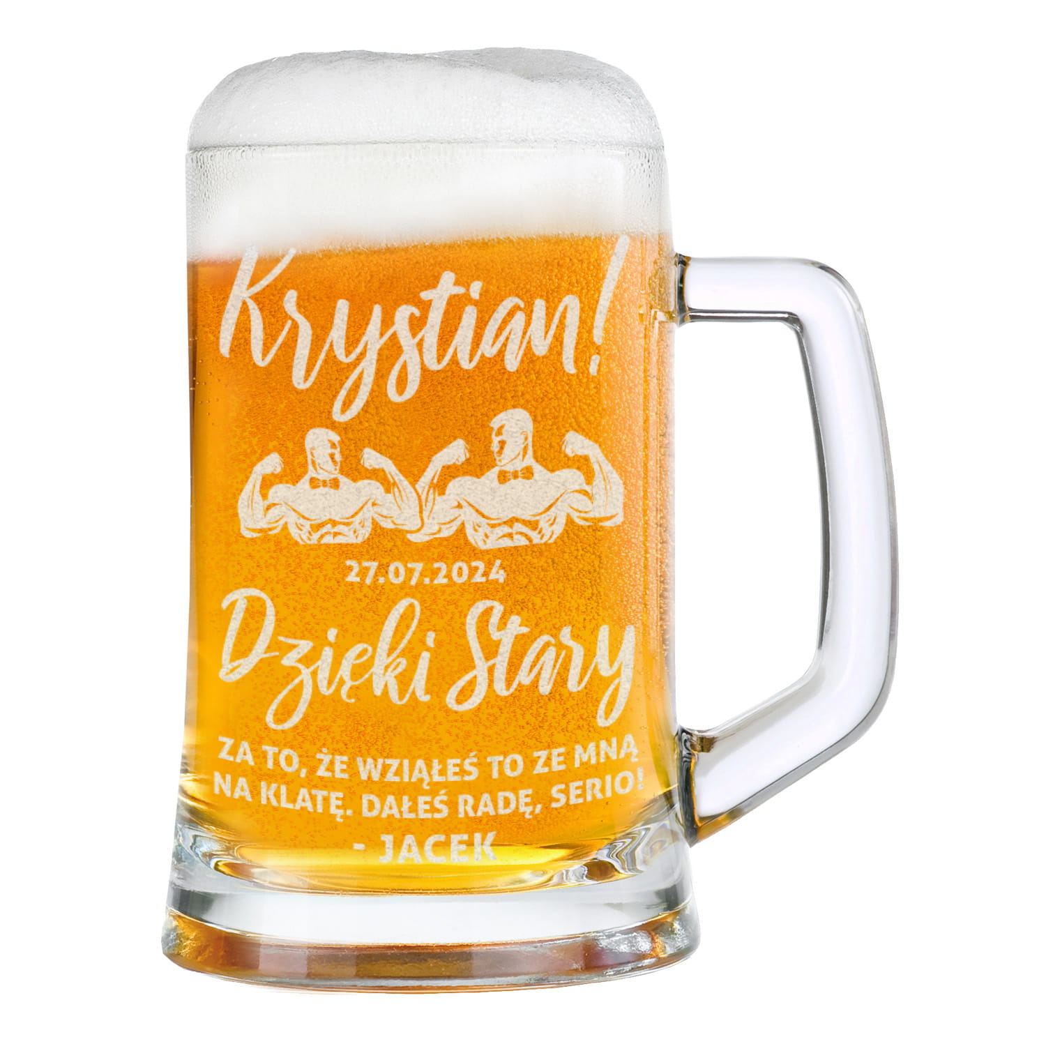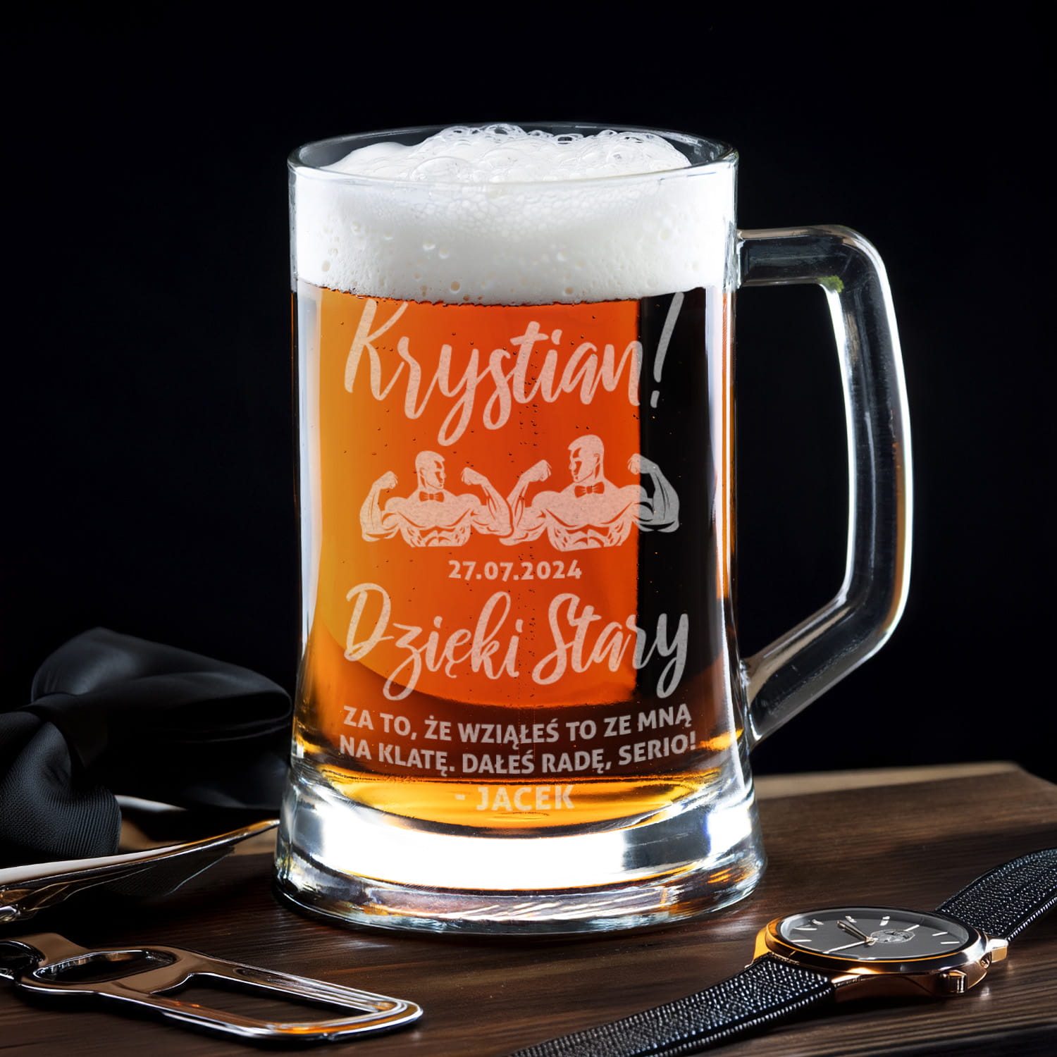 ⭐ Kufel do piwa z grawerem będzie idealnym pomysłem, aby podziękować Twojemu świadkowi za jego wsparcie w nietuzinkowy i zabawny sposób.
