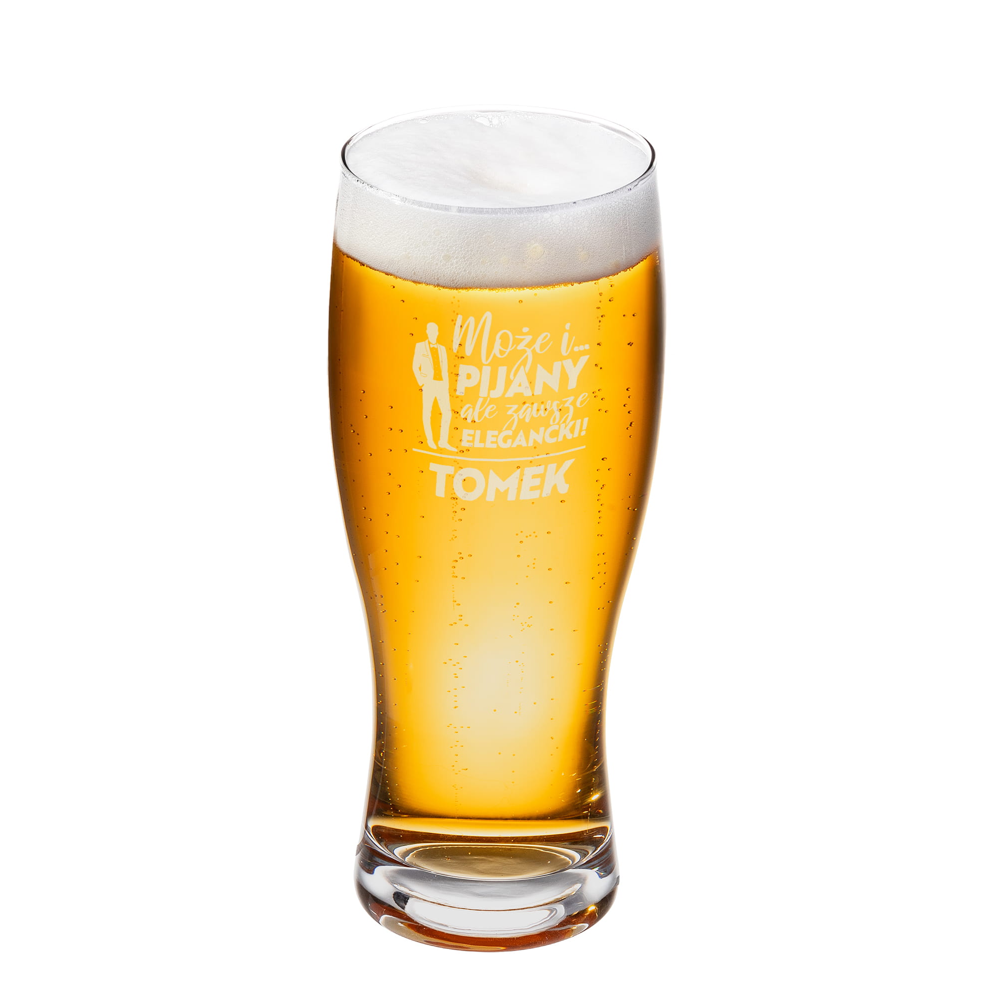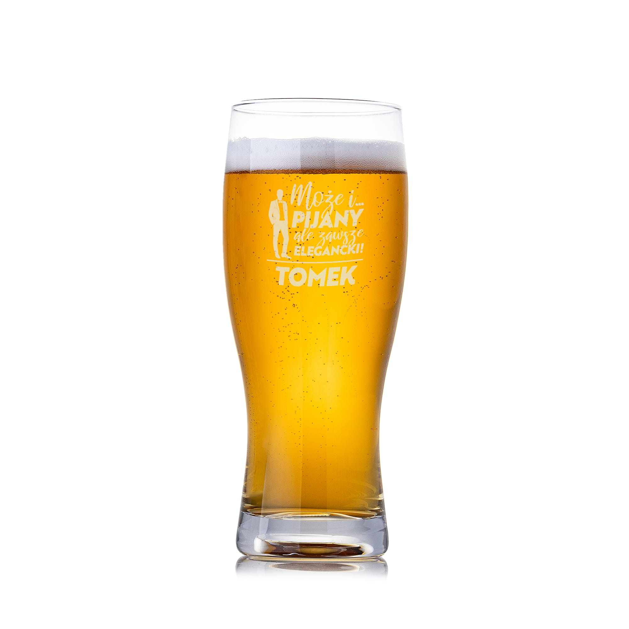 Kufel z Grawerem Do Piwa na Kawalerski - Prezent na Wieczór Kawalerski - Wysoki Kufel Barowy - Może i Pijany