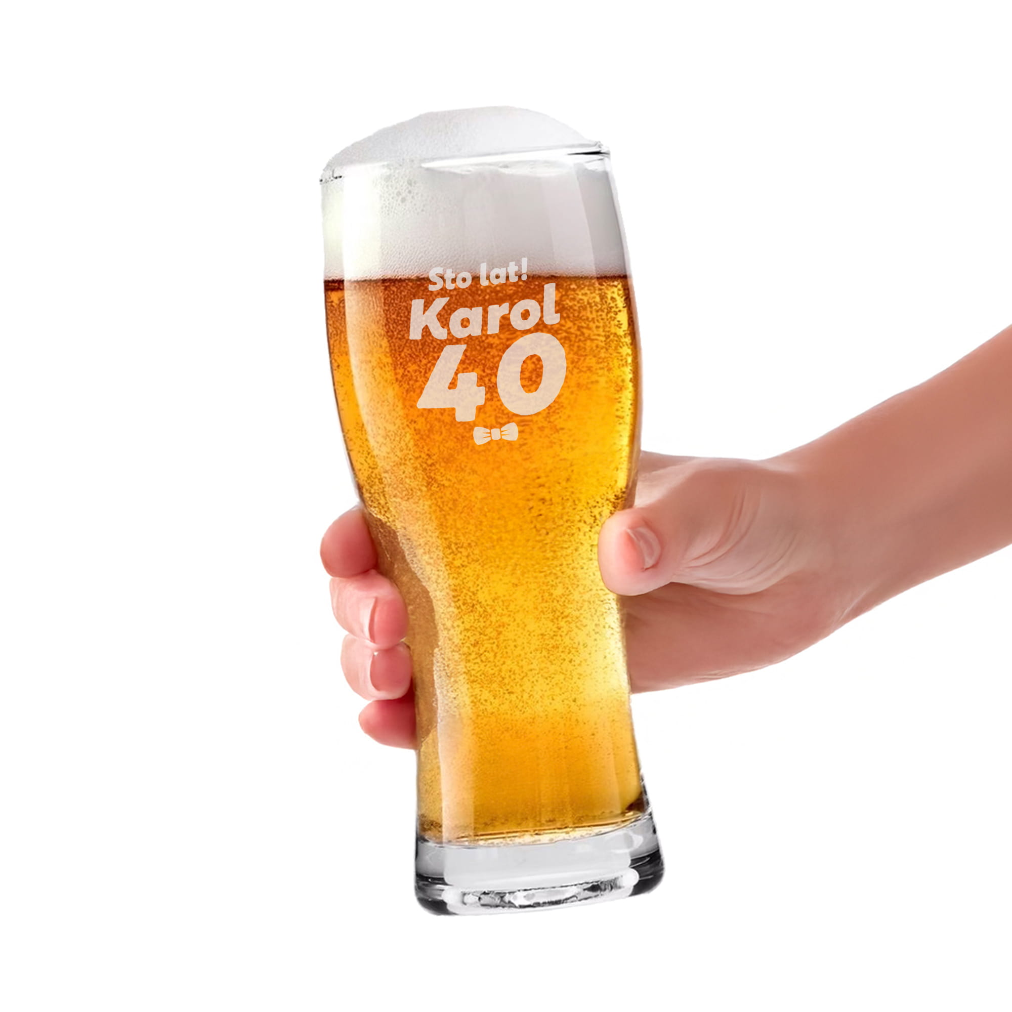 Kufel z Grawerem Do Piwa na Urodziny - Prezent z Imieniem na Urodziny - Wysoki Kufel Barowy - 100 lat