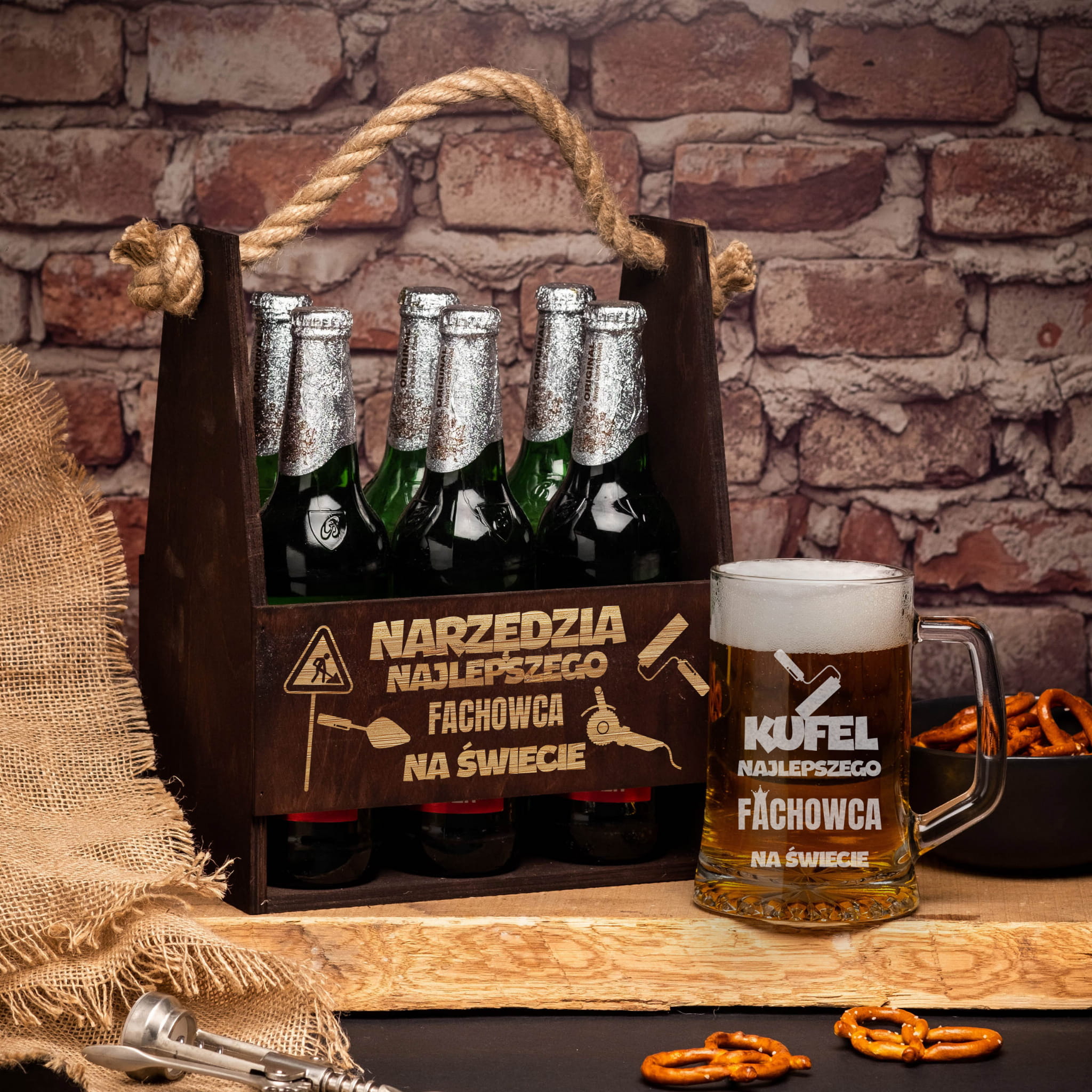Wybierz idealny dla budowlańca – zestaw składający się z kufla oraz nosidła na piwo z grawerem!