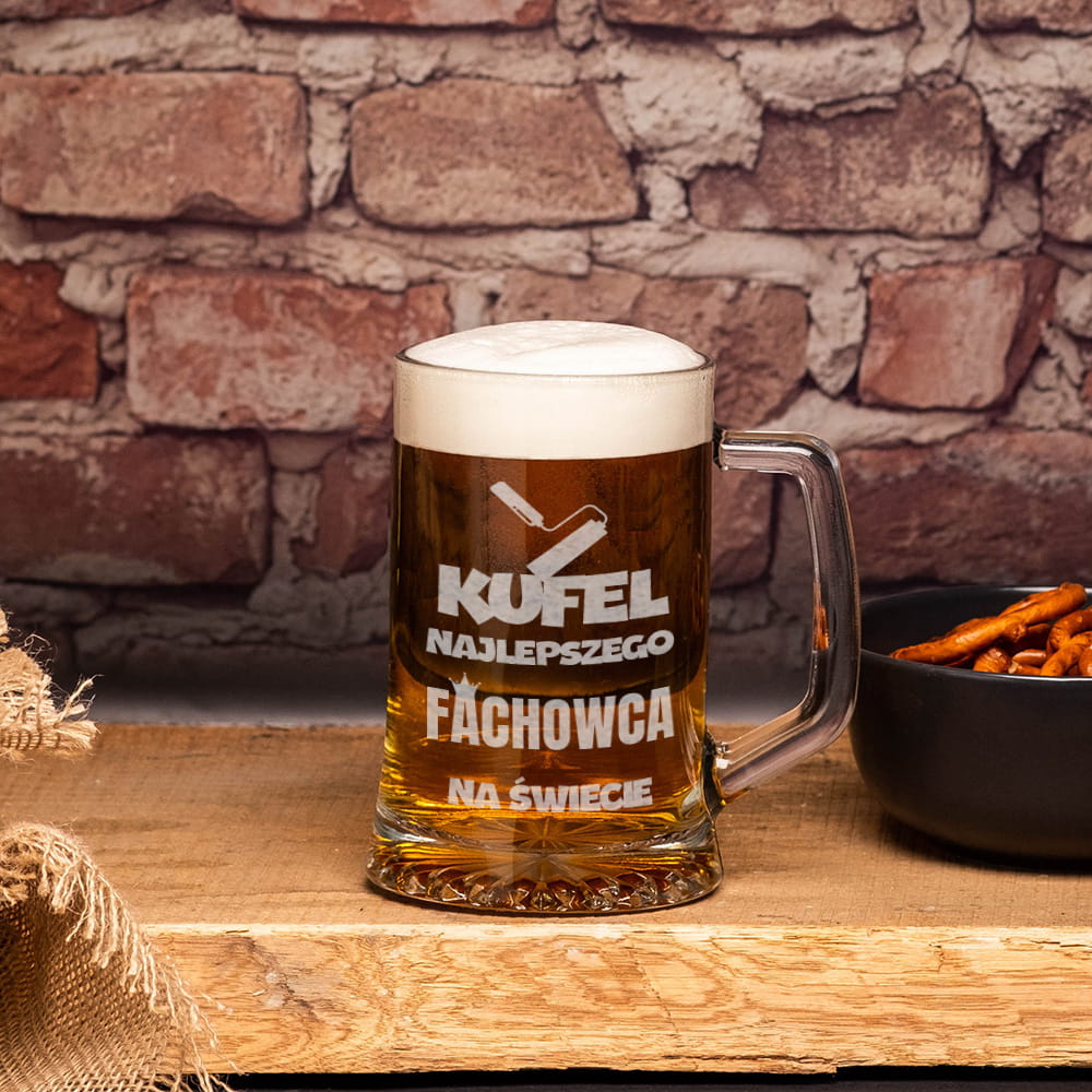 Kufel wykonany jest z grubego szkła, dzięki czemu jest wytrzymały i posłuży na długie lata. Prezent dla budowlańca z personalizacją to zawsze strzał w dziesiątkę! Wygodny i stabilny kufel zmieści całą standardową butelkę piwa razem z pianką.
