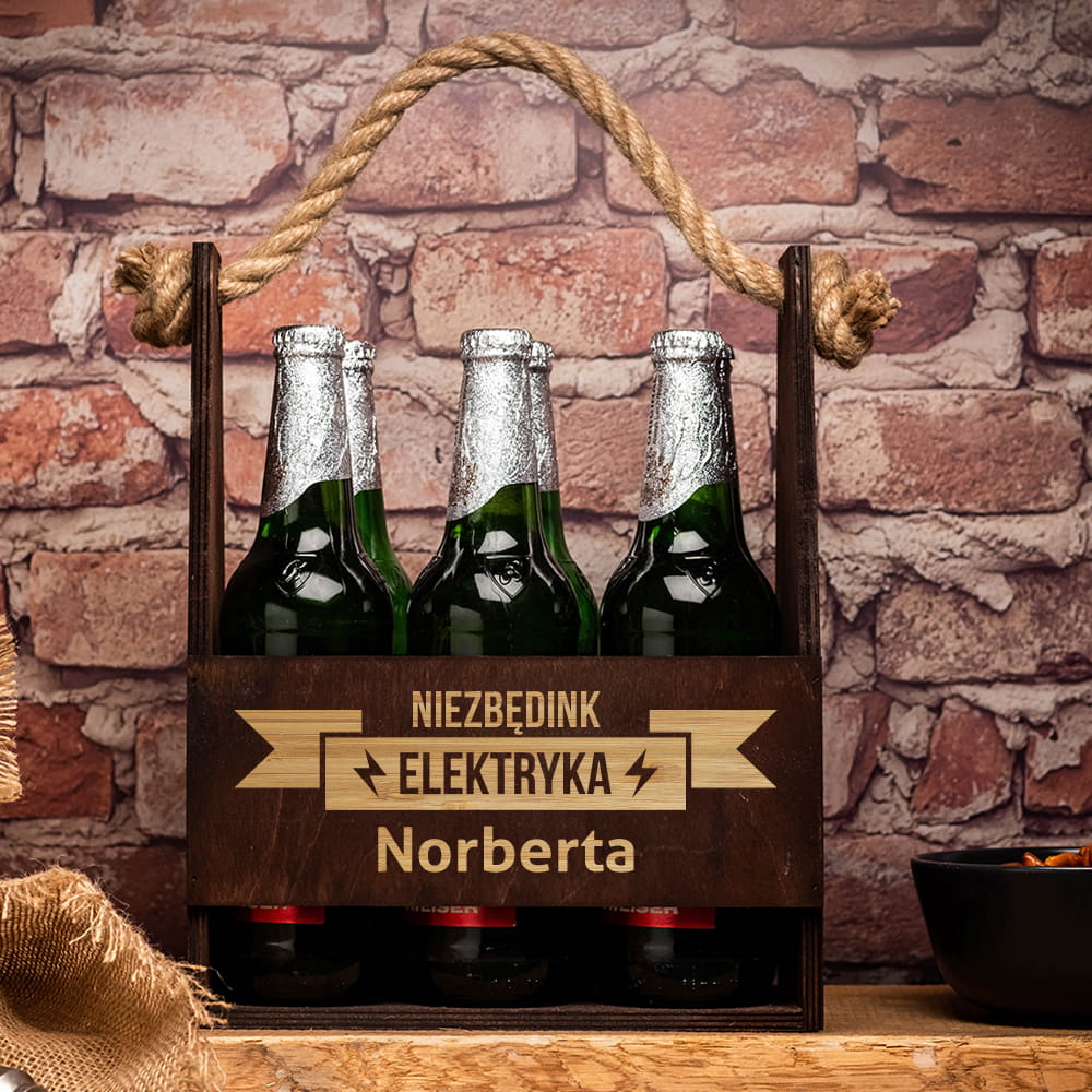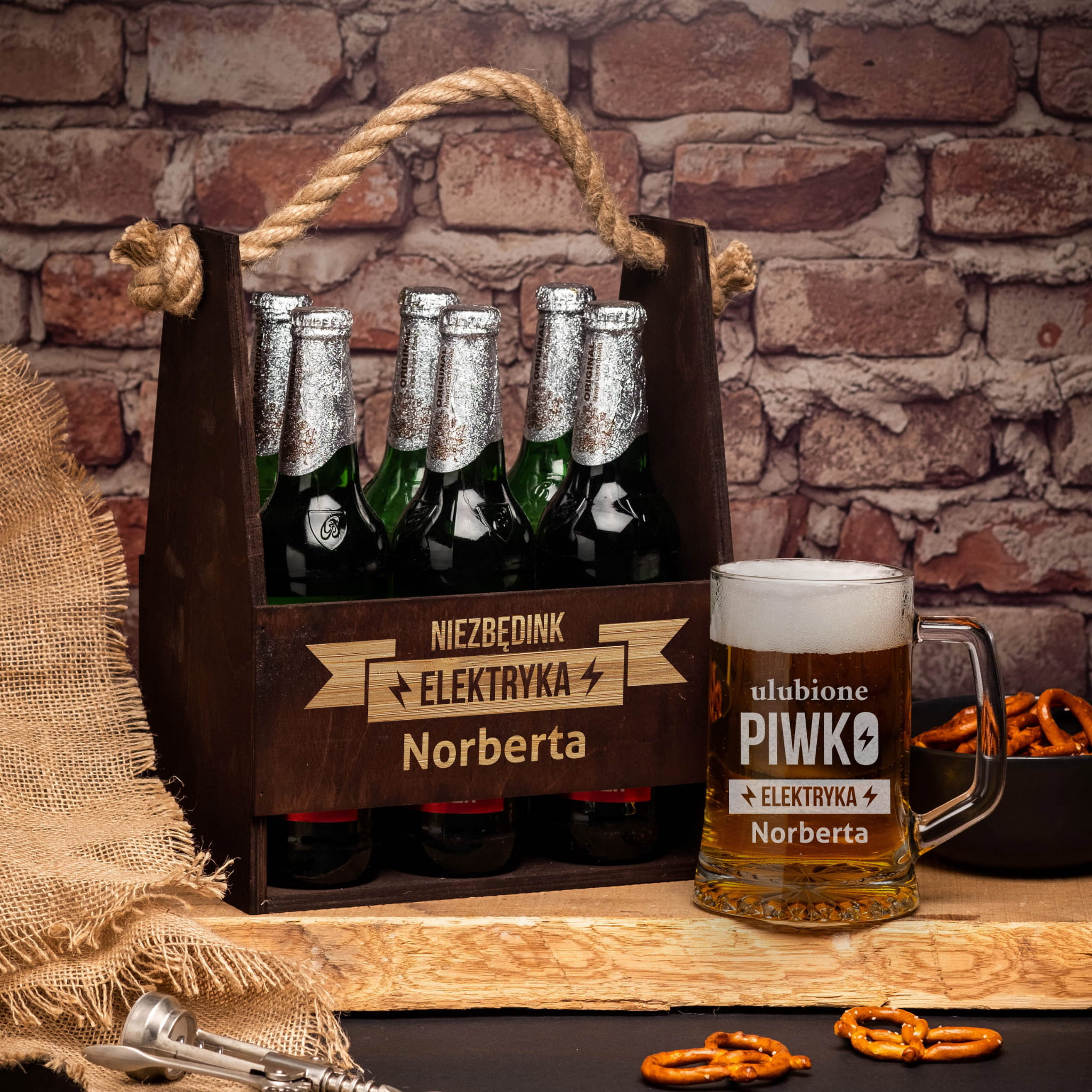 Wybierz idealny dla elektryka – zestaw składający się z kufla oraz nosidła na piwo z grawerem!