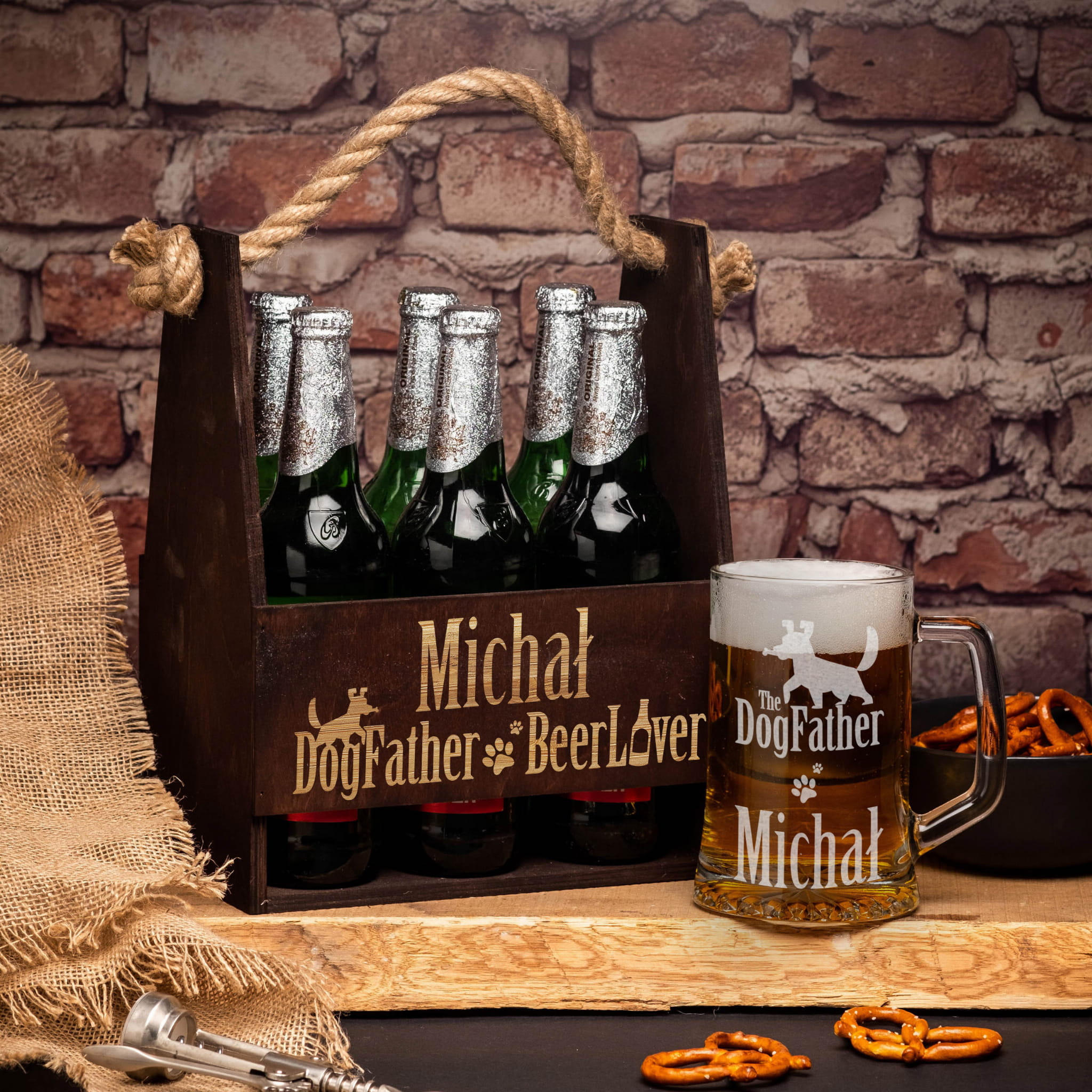 Nosidło i Kufel na Piwo z Grawerem - Prezent dla Miłośnika Psów - DogFather BeerLover