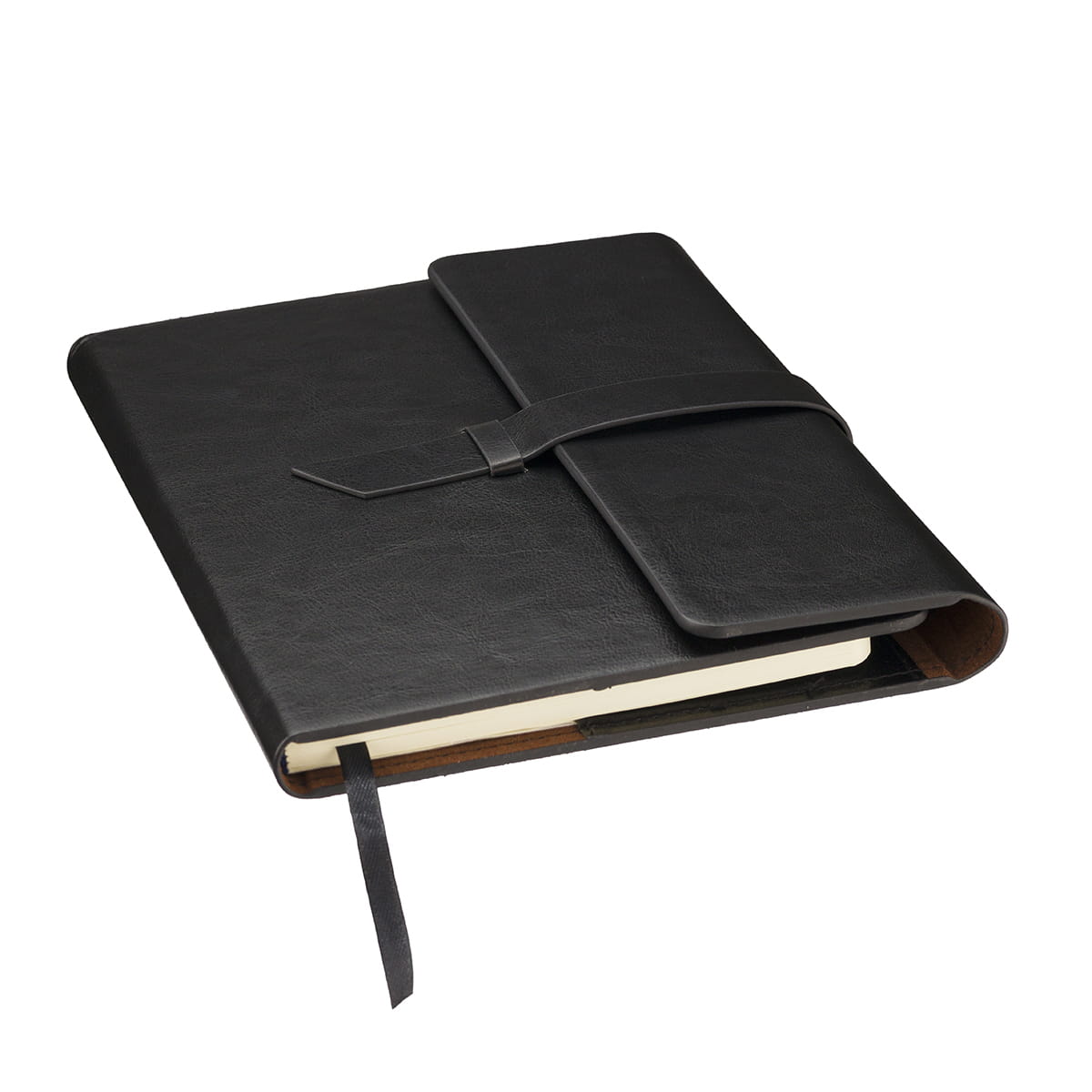 Elegancki notes w klasycznej okładce wykonanej z ekoskóry. Notes zawiera 80 kartek w linie oraz praktyczną wstążeczkę - zakładkę. Wewnątrz okładki miejsce na 3 wizytówki, długopis oraz pamięć USB. Okładka nie jest umocowana na stałe do bloku notesu, tylko nasuwana na pierwsze kartki, co daje możliwość wymiany notesu. Notes zamykany za pomocą paska z ekoskóry.
