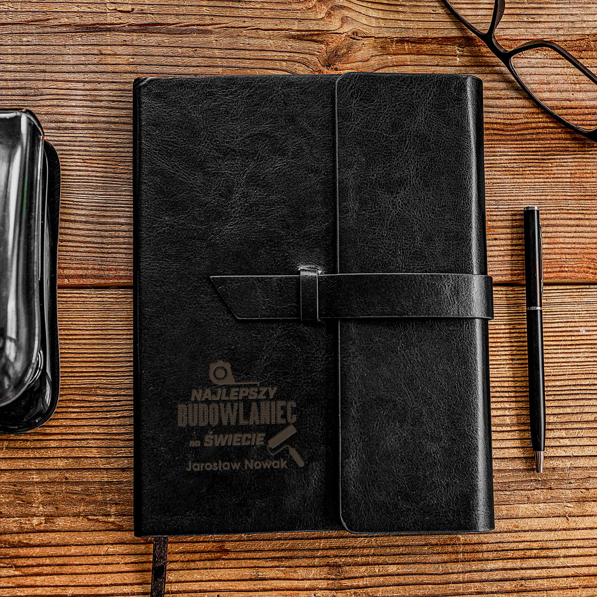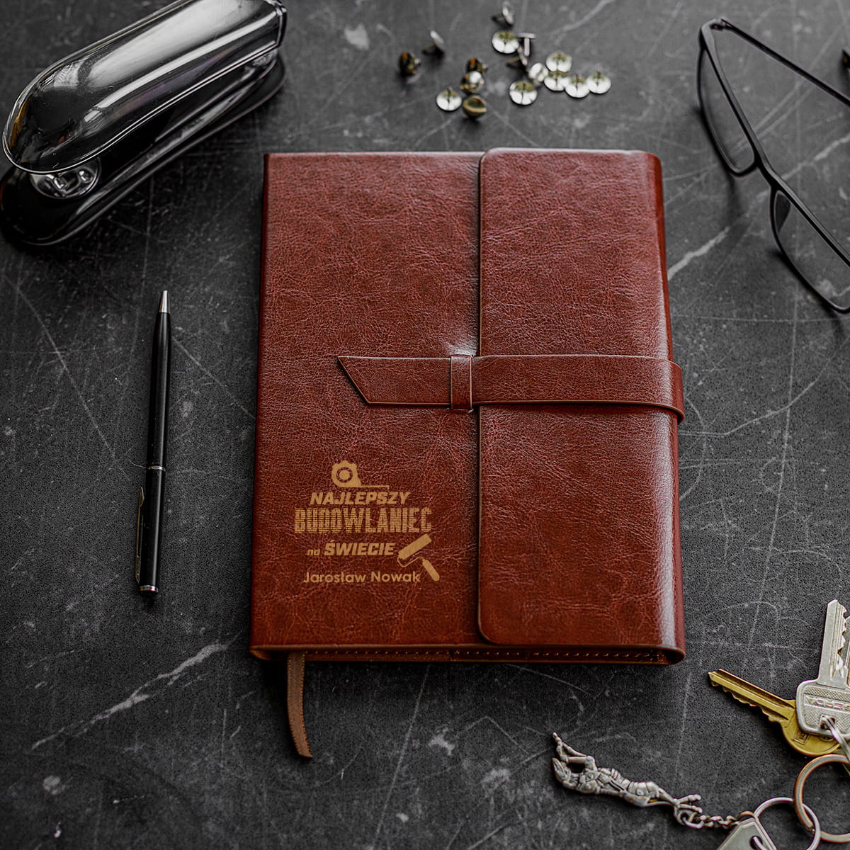 ELEGANCKI SKÓRZANY NOTES Z GRAWEREM - IDEALNY PREZENT DLA BUDOWLAŃCA - NOTES DLA BUDOWLAŃCA Z GRAWEREM