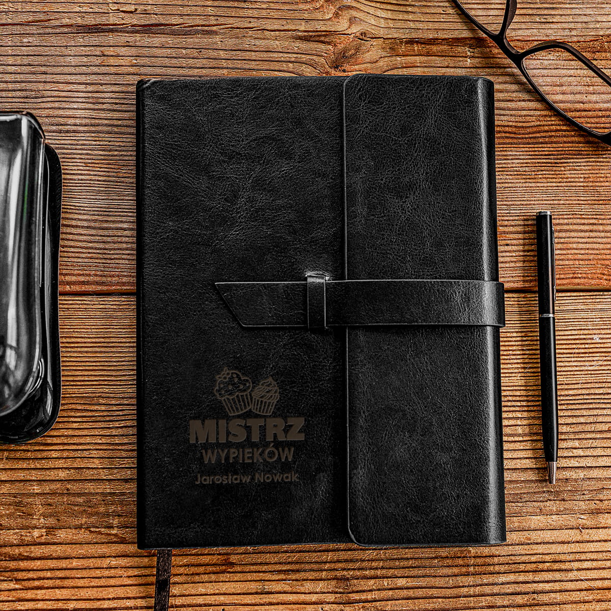 ELEGANCKI SKÓRZANY NOTES Z GRAWEREM - IDEALNY PREZENT DLA CUKIERNIKA - NOTES DLA CUKIERNIKA Z GRAWEREM