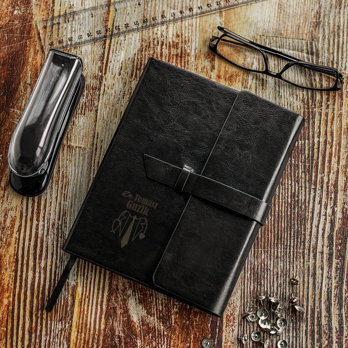 ELEGANCKI SKÓRZANY NOTES Z GRAWEREM - IDEALNY PREZENT DLA LEKARZA - NOTES DLA LEKARZA Z GRAWEREM