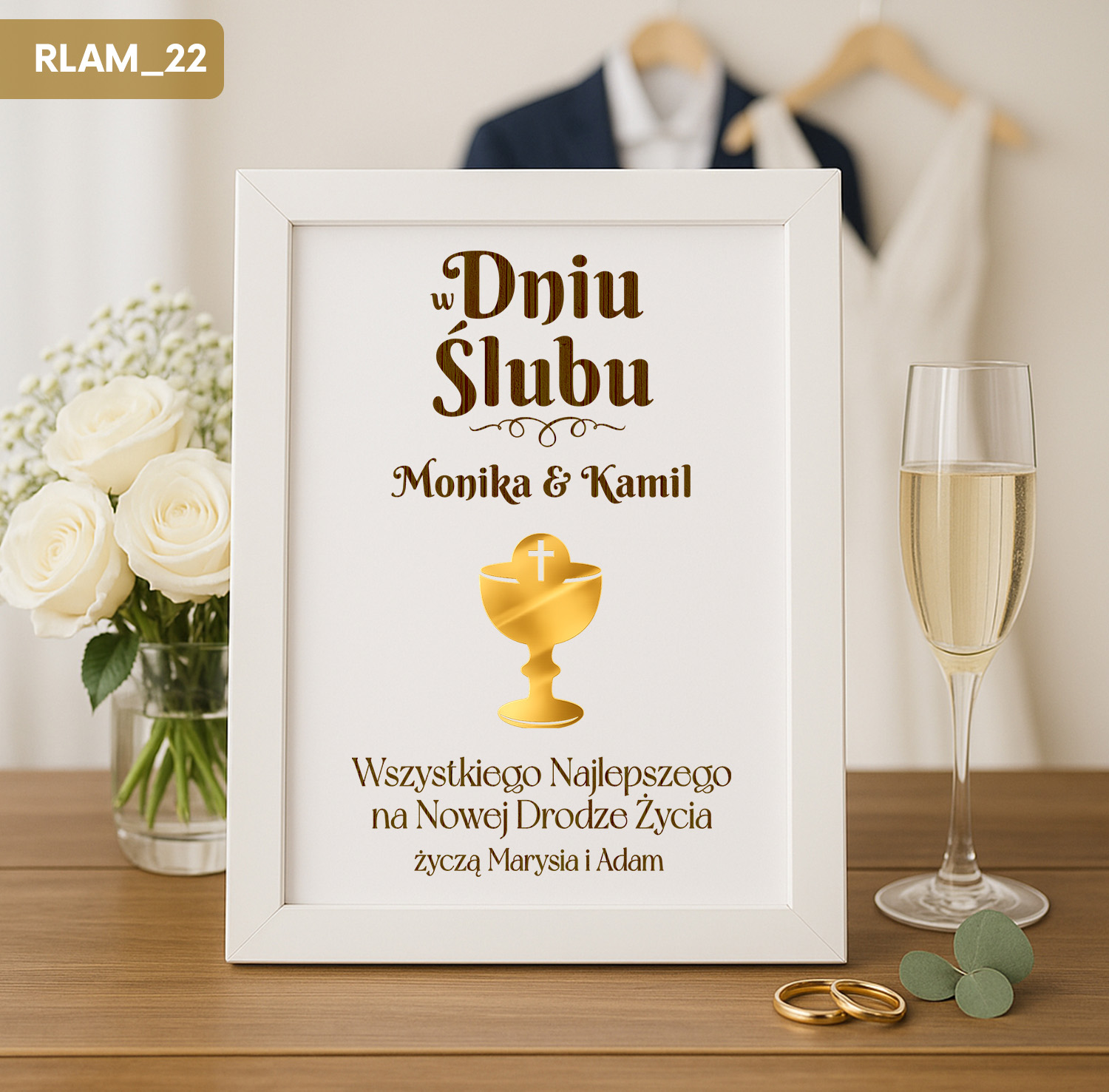 ✴️ Długowieczność i estetyka – staranne wykonanie i trwałość grawera sprawiają, że ramka zyskuje ponadczasowy urok i pozostaje elegancką ozdobą na lata. Dzięki zastosowaniu lekkich materiałów (MDF i plastik), ramka jest łatwa do zawieszenia lub ustawienia.