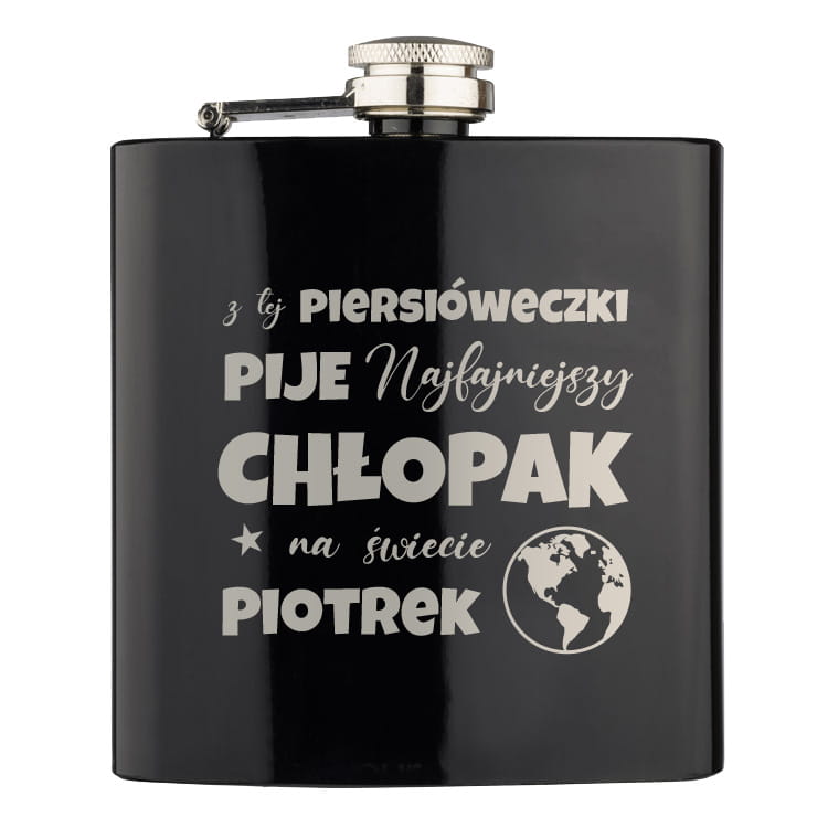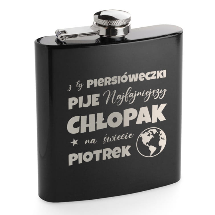 Wybierz prezent dla chłopaka, który będzie jedyny w swoim rodzaju – czarną piersiówkę z grawerem. Idealny prezent na Dzień Chłopaka, Walentynki czy Urodziny.