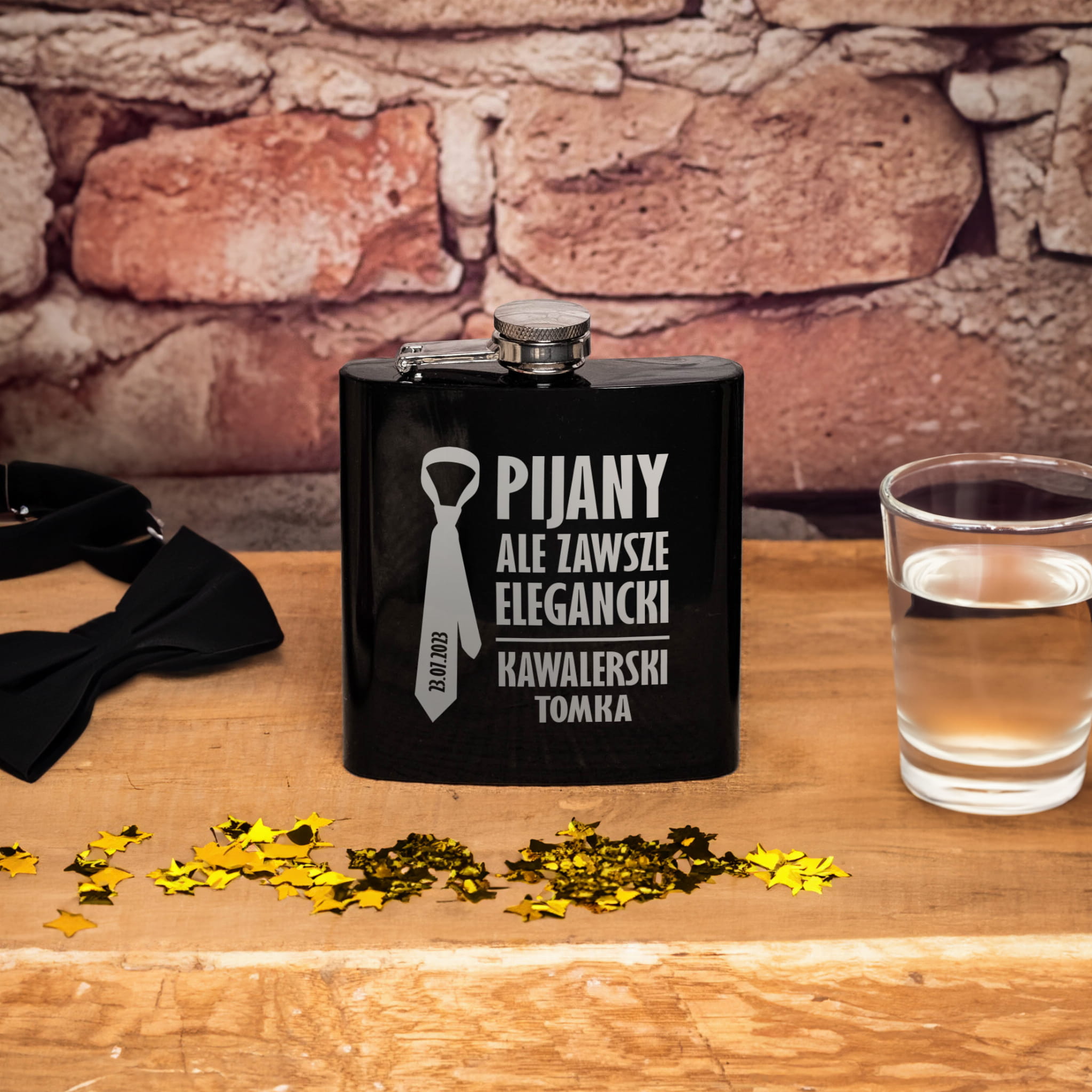 Piersiówka z Grawerem na Kawalerski - Prezent na Wieczór Kawalerski - Pijany, ale Elegancki
