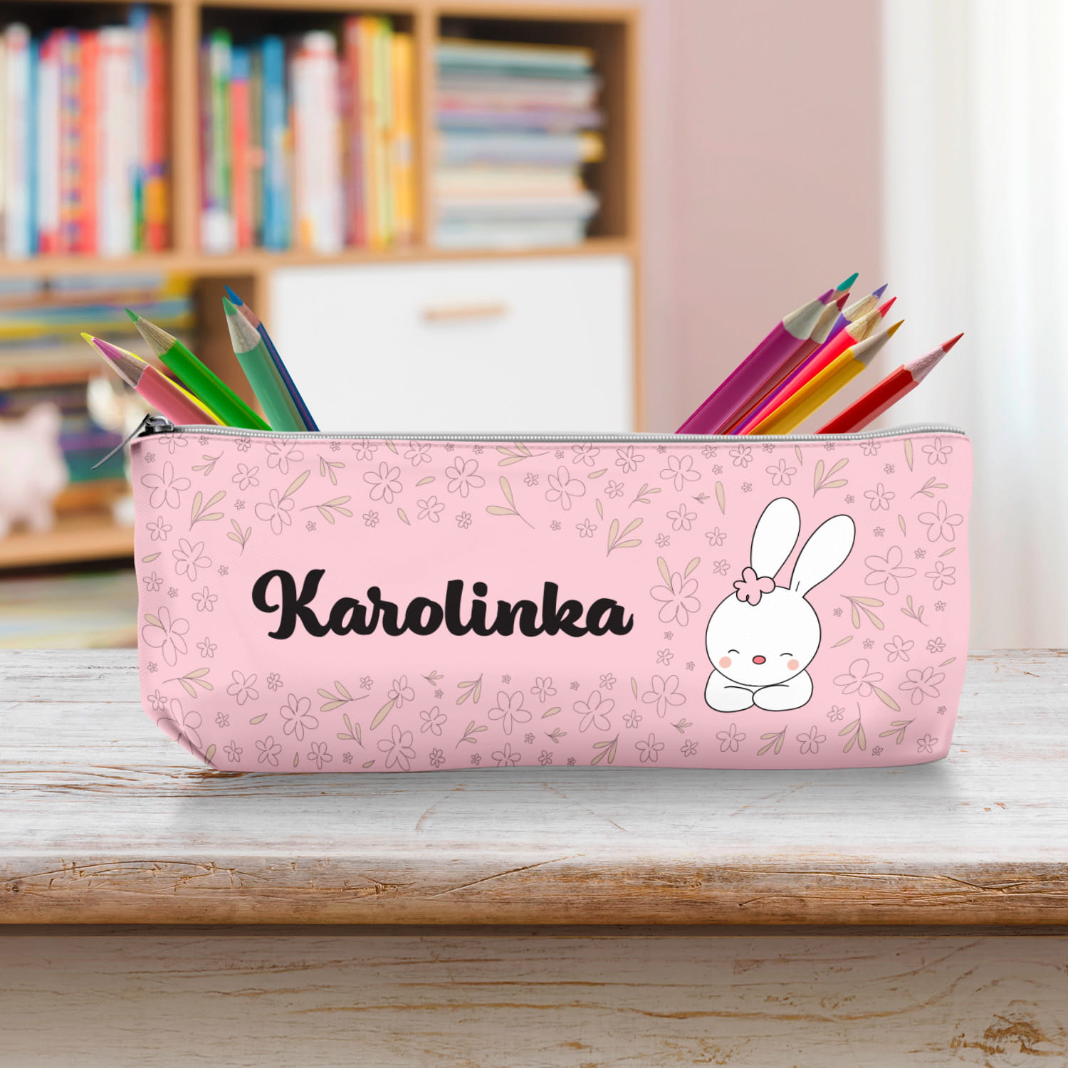 Piórnik Szkolny Dla Dzieci z Imieniem do Szkoły Przedszkola - Króliczek Kwiatuszki