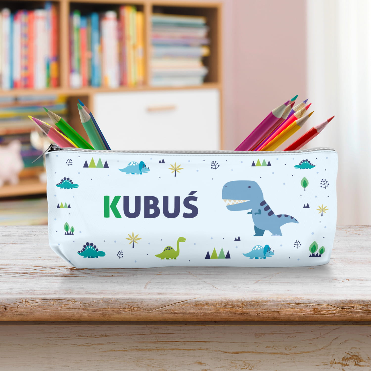 Piórnik Szkolny Dla Dzieci z Imieniem do Szkoły Przedszkola - Niebieski Dinozaur