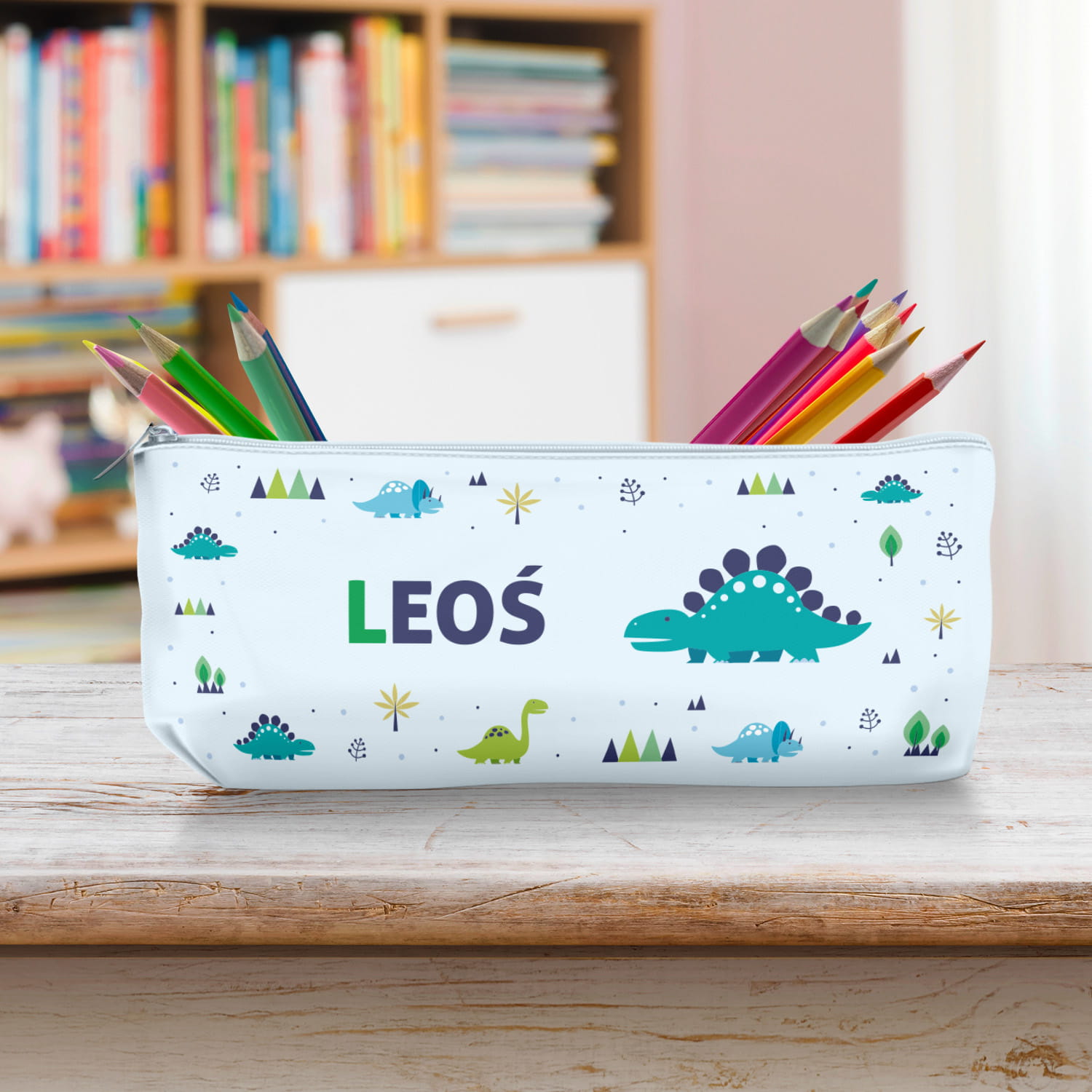 Piórnik Szkolny Dla Dzieci z Imieniem do Szkoły Przedszkola - Turkusowy Dinozaur