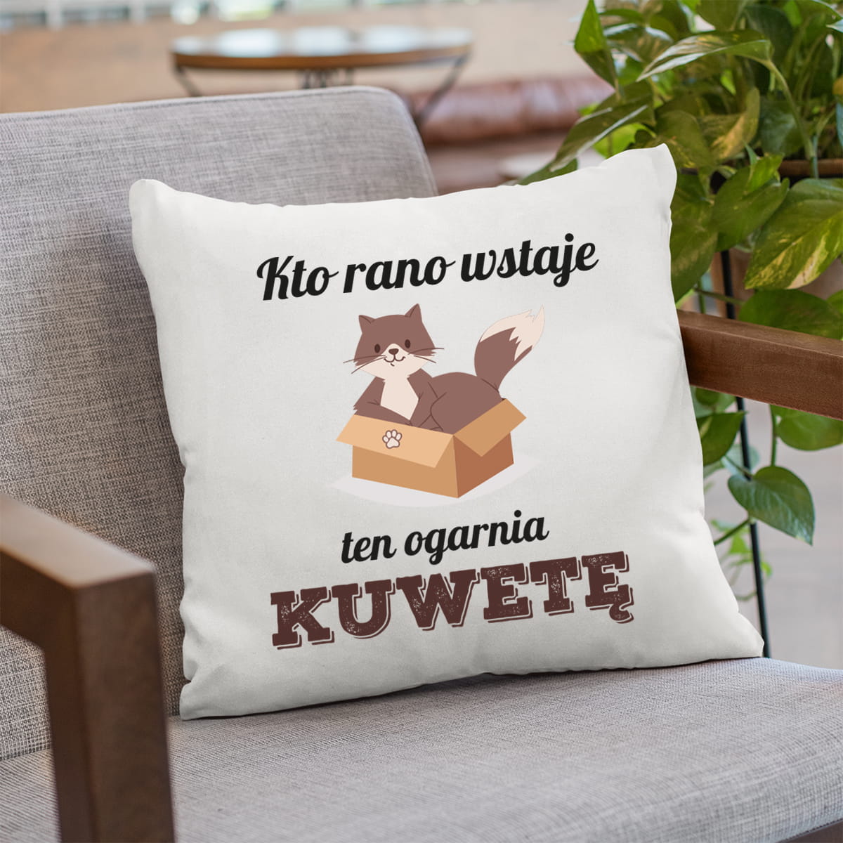 Poduszka z Kotem - Prezent dla Kociarza, Kociary - Kto Rano Wstaje