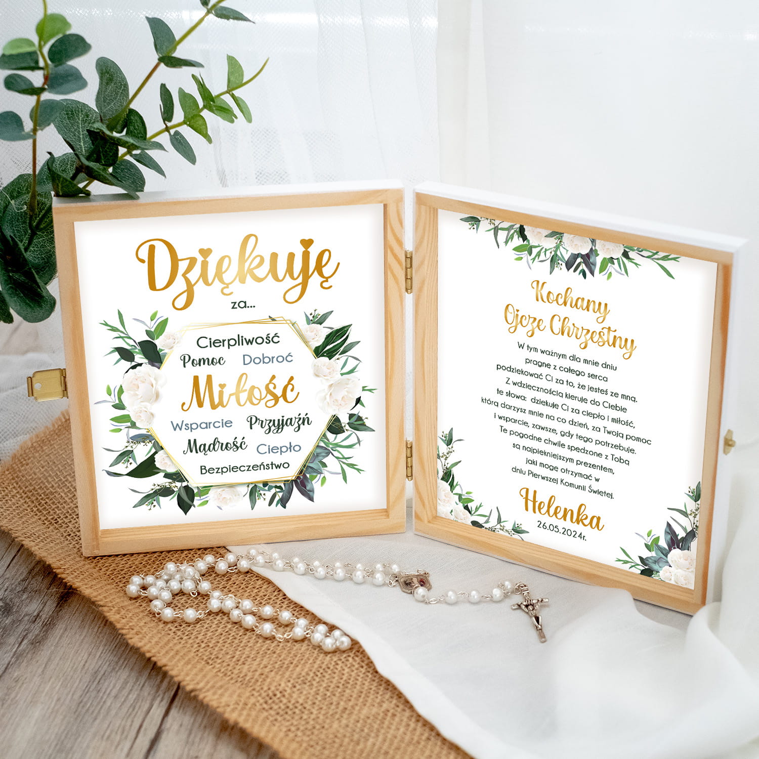 PODZIĘKOWANIE NA KOMUNIE DLA OJCA CHRZESTNEGO - ELEGANCKIE PUDEŁKO ZE SPERSONALIZOWANYM GRAWEREM
