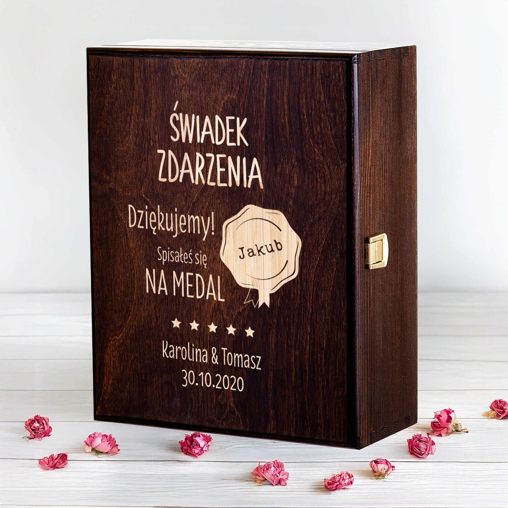 Skrzynka na whisky z grawerem będzie elegancką, a zarazem praktyczną dekoracją domu lub mieszkania. Ten wyjątkowy mężczyzna będzie mógł spędzić wieczór ze szklaneczką whisky w dłoni, delektując się wytrawnym alkoholem i błogim spokojem. Taki upominek będzie pięknym prezentem dla świadka i sprawi mu wiele radości.