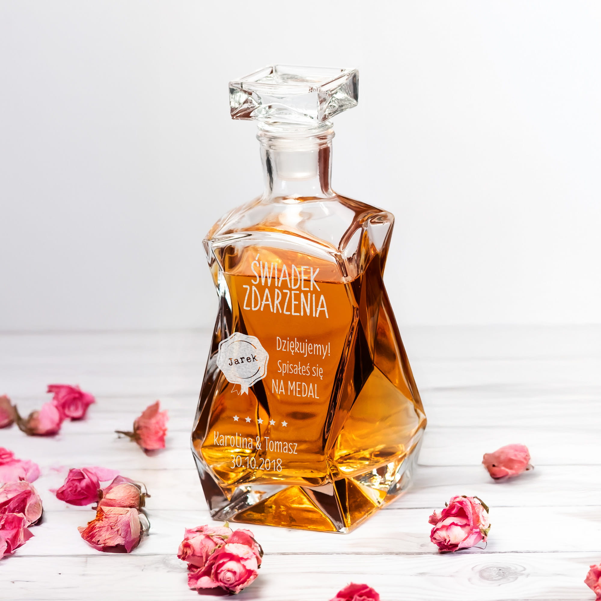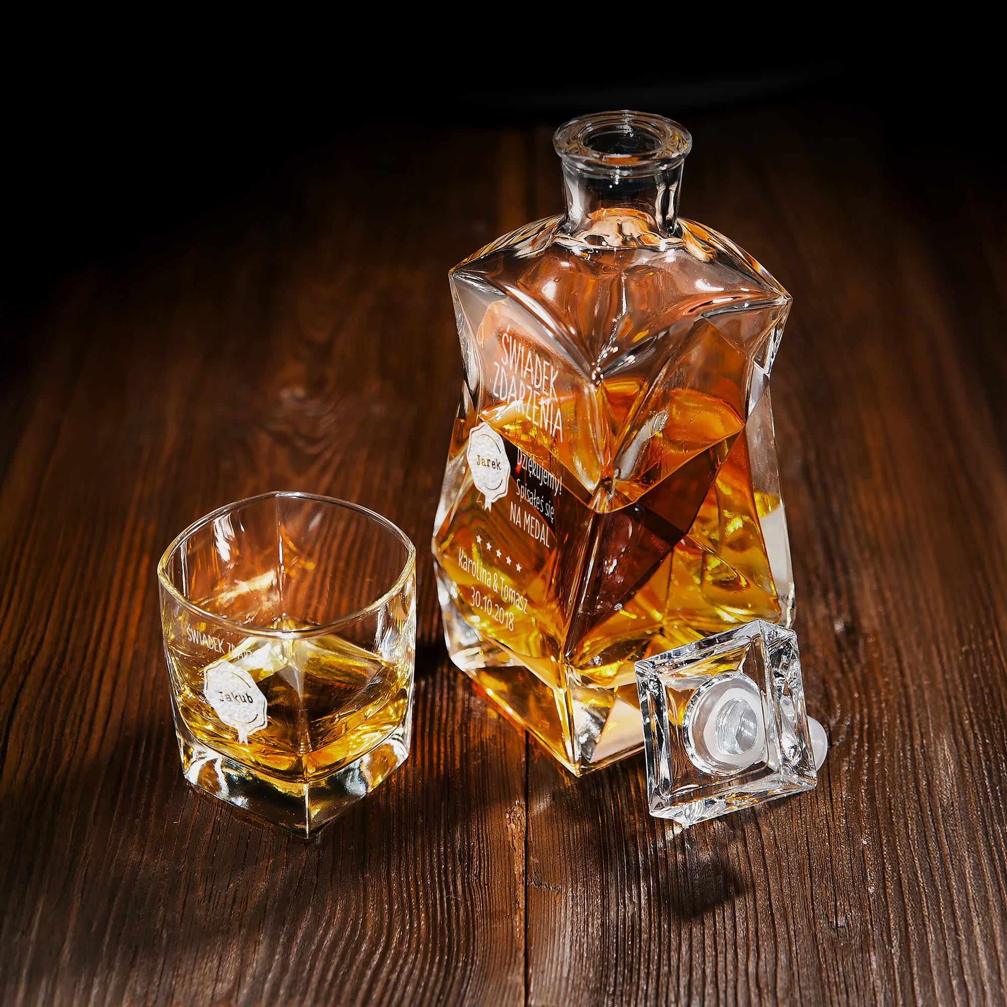 Podziękowanie dla świadka na ślub - Zestaw karafka z grawerem i szklanki - Świadek Zdarzenia - Łamana