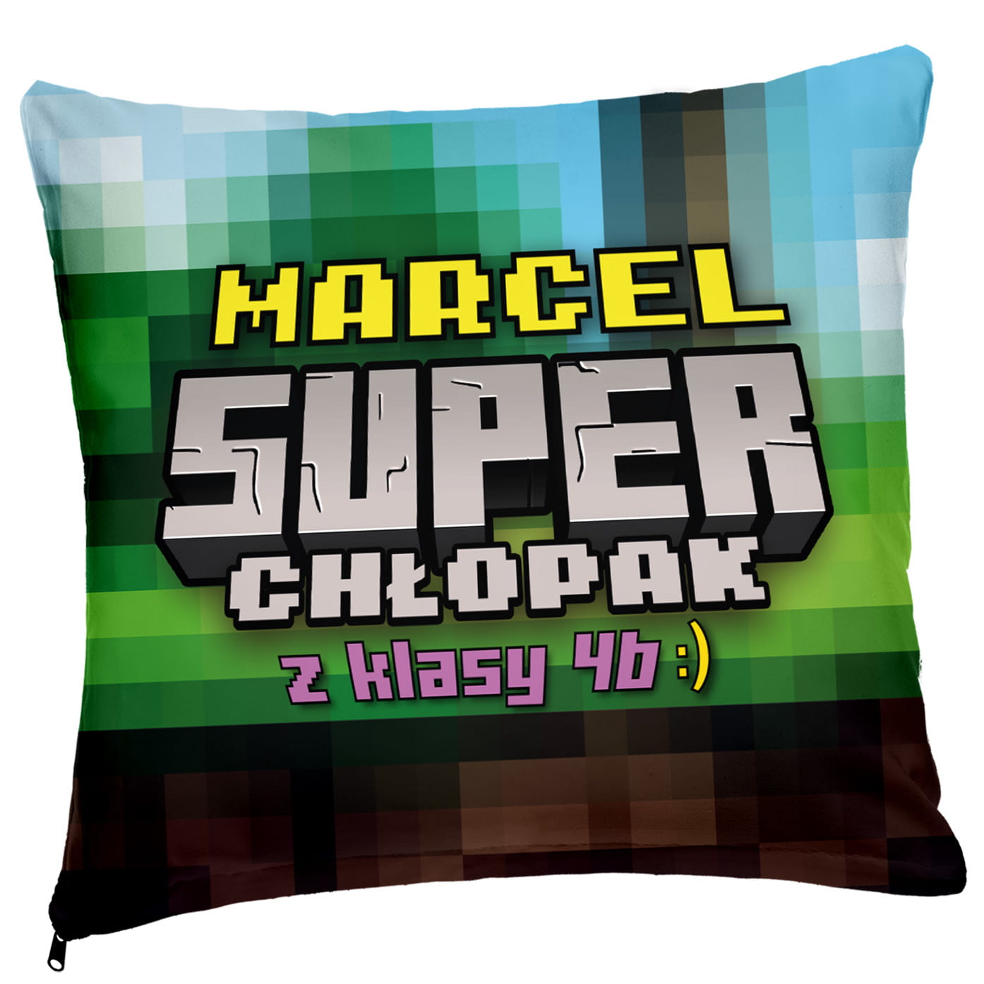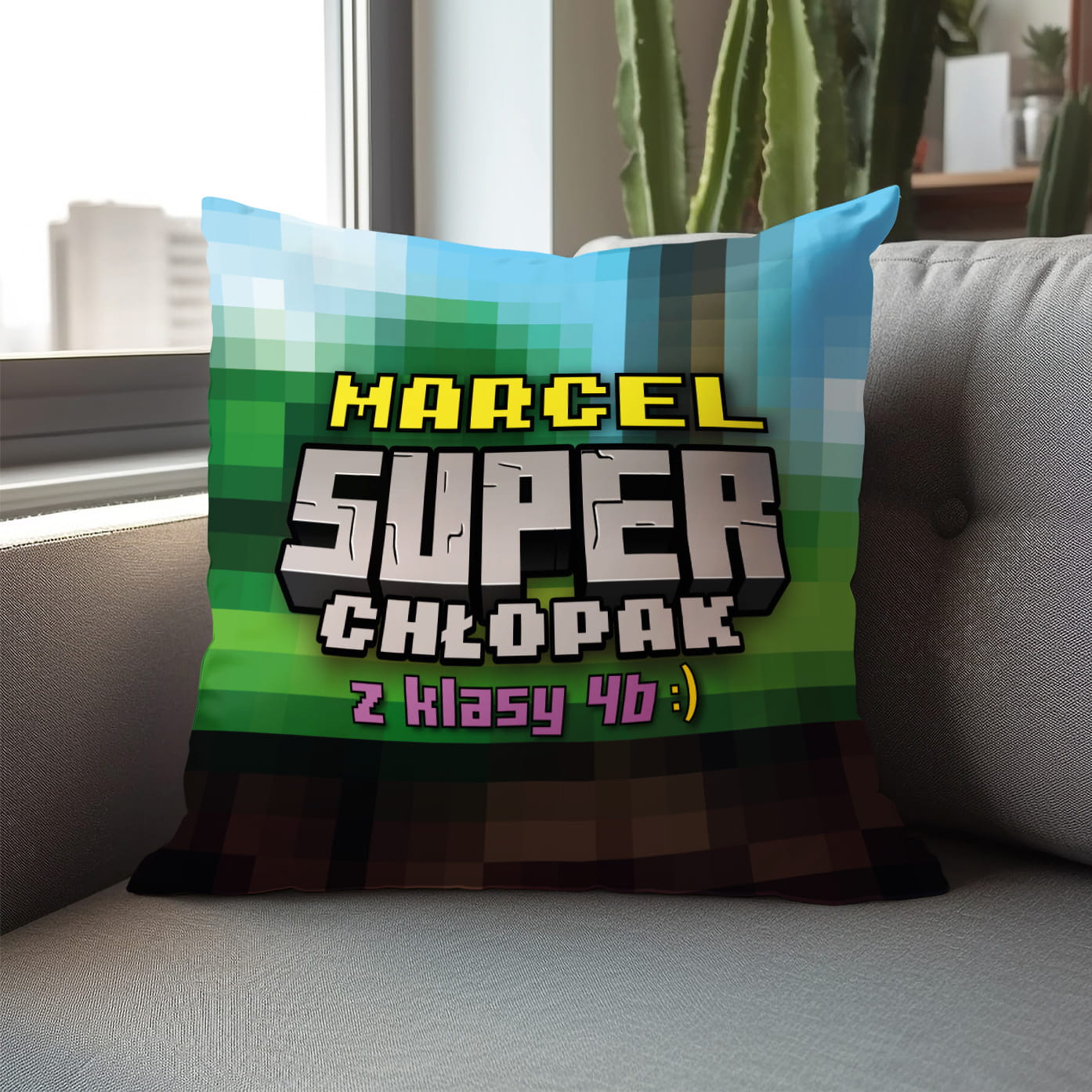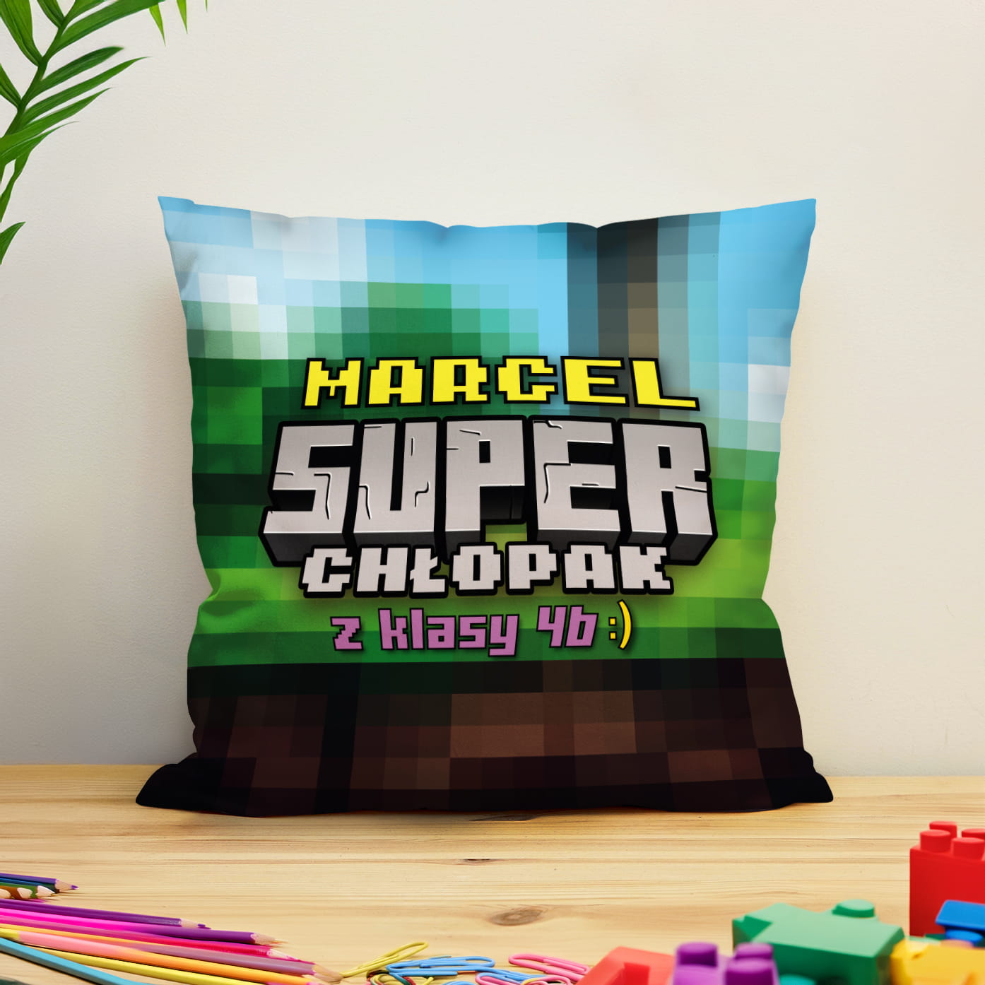 Prezent na Dzień Chłopaka w Klasie - Kolorowa Poduszka z Imieniem dla Chłopaka - Super Chłopak Kraft