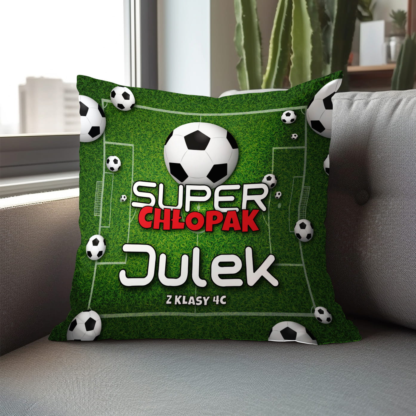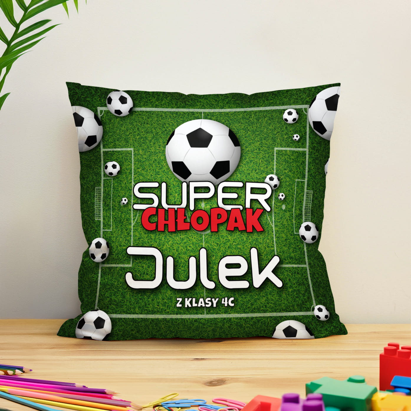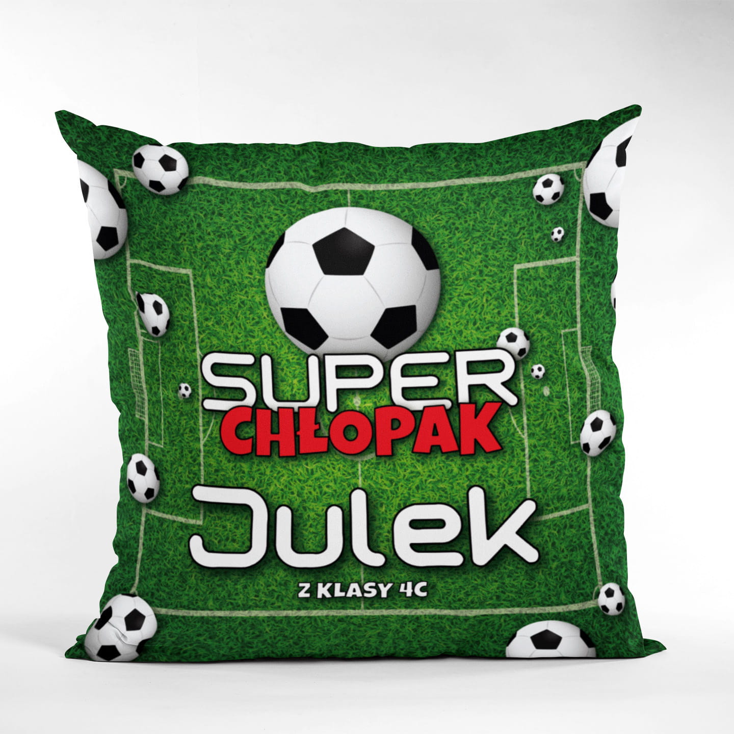Prezent na Dzień Chłopaka w Klasie - Kolorowa Poduszka z Imieniem dla Chłopaka - Super Chłopak Piłka Nożna