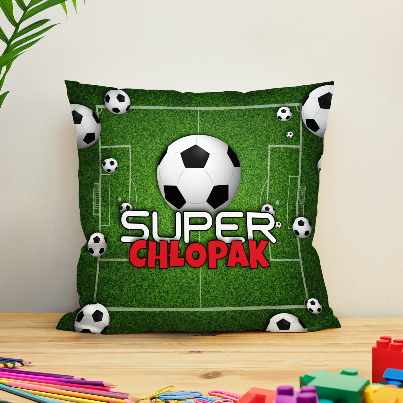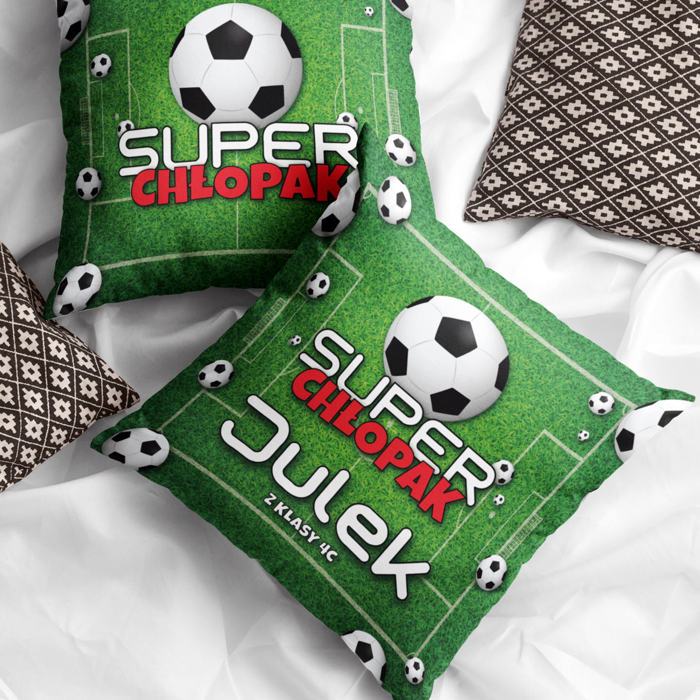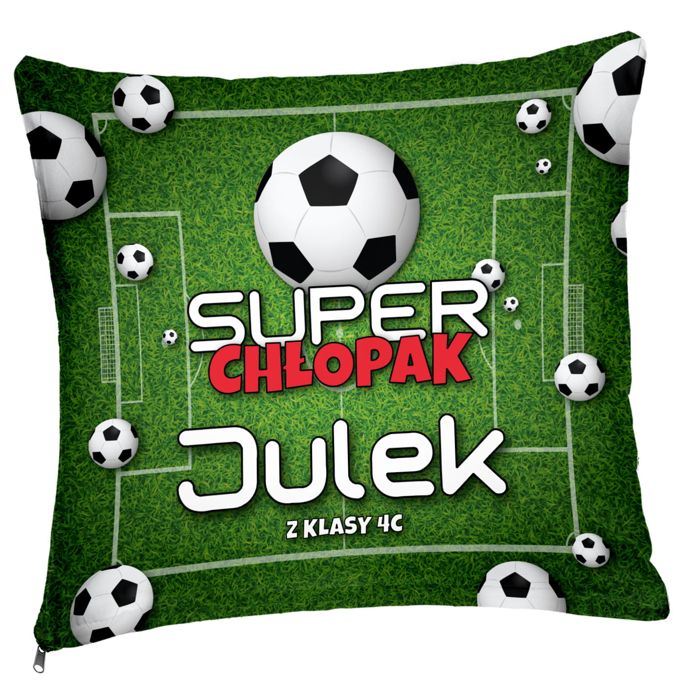 Prezent na Dzień Chłopaka w Klasie - Kolorowa Poduszka z Imieniem dla Chłopaka - Super Chłopak Piłka Nożna