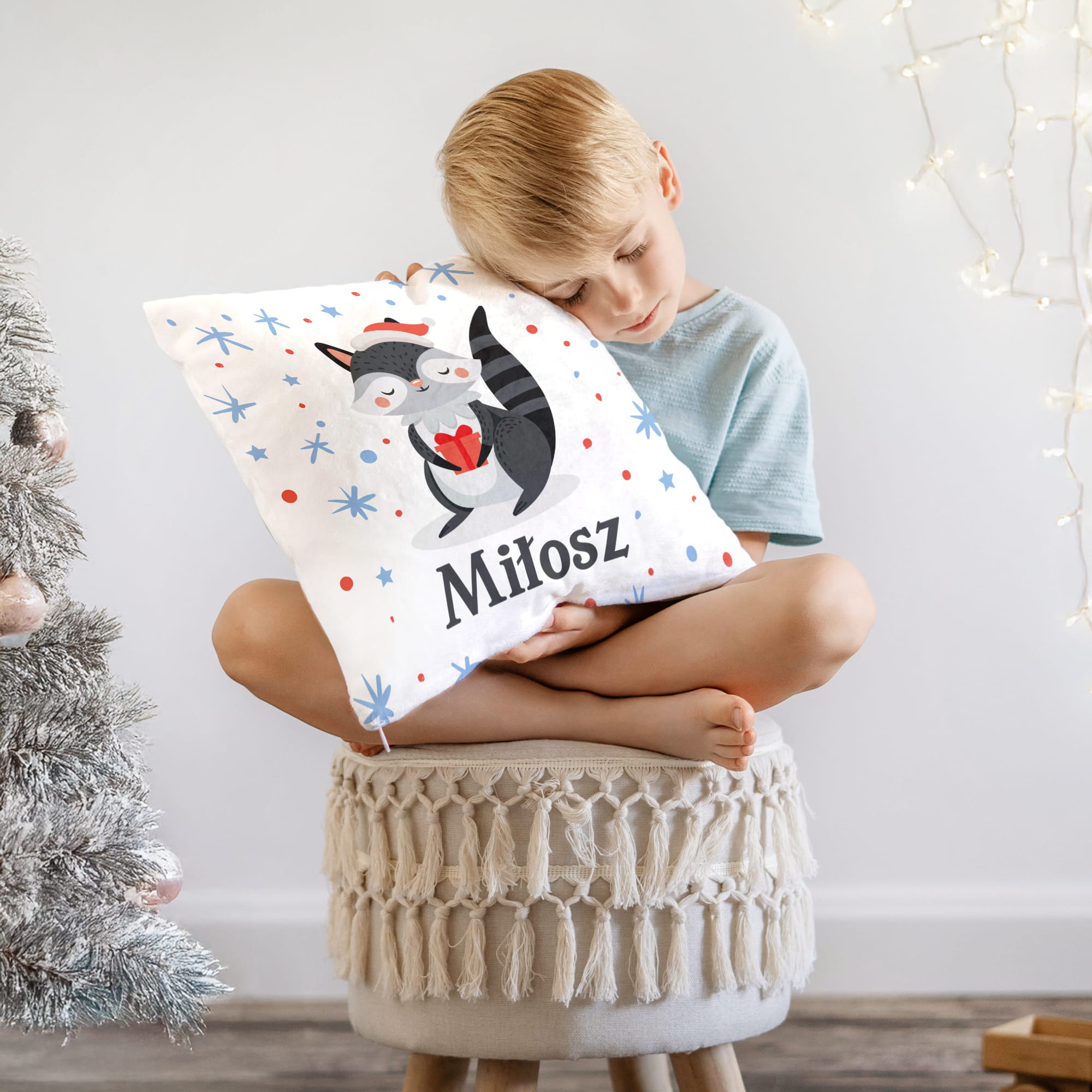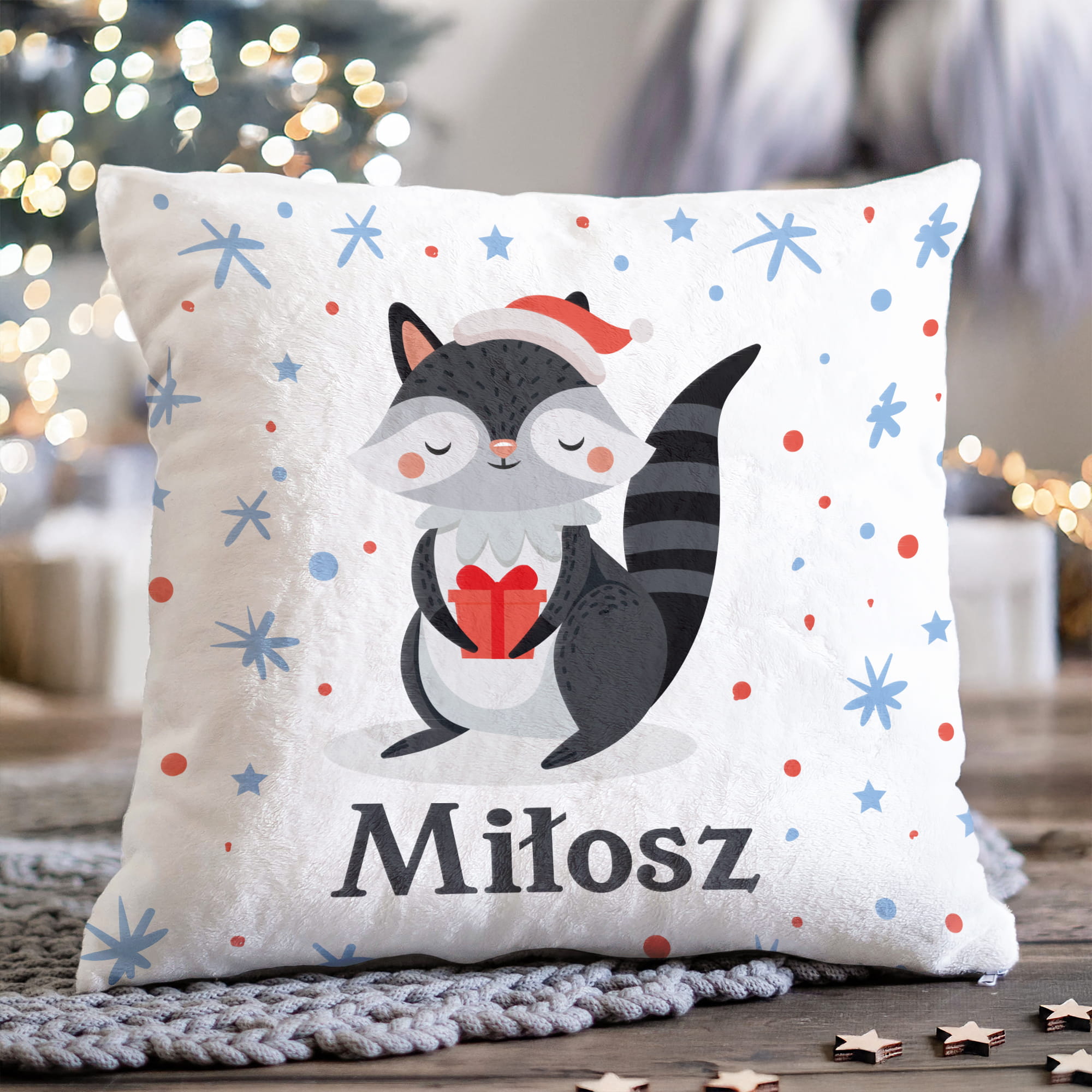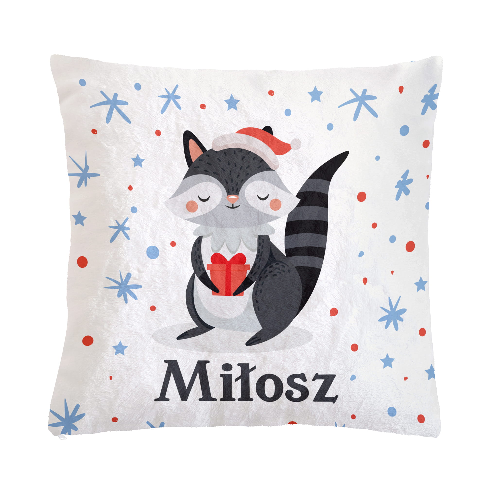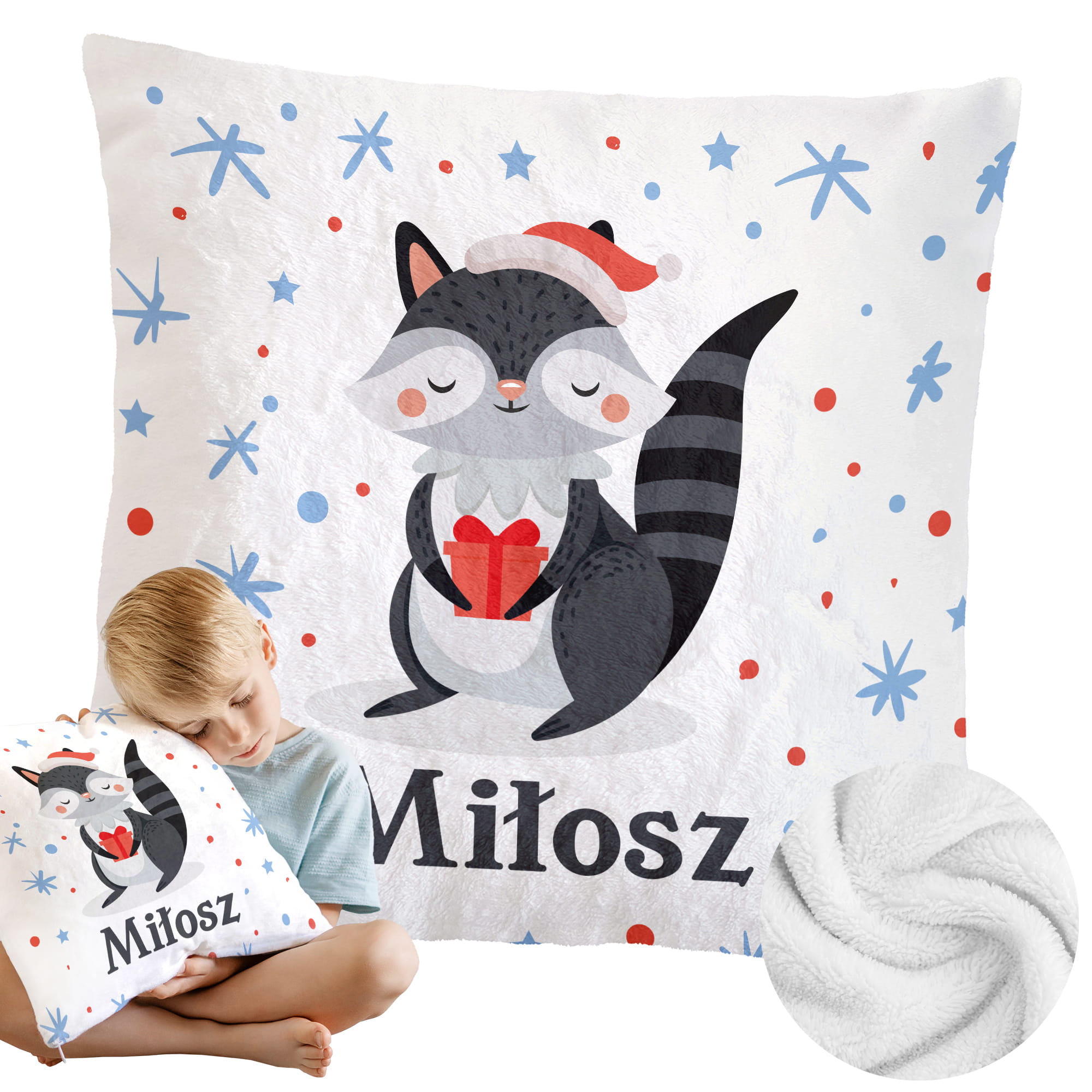 ⭐MIĘCIUTKA PLUSZOWA PODUSZKA Z KOLOROWYM ŚWIĄTECZNYM NADRUKIEM I Z IMIENIEM DZIECKA⭐
