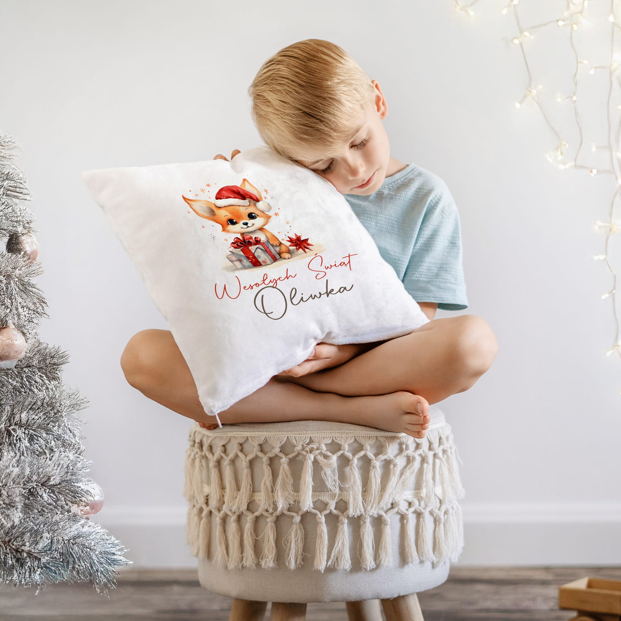 ⭐MIĘCIUTKA PLUSZOWA PODUSZKA Z KOLOROWYM ŚWIĄTECZNYM NADRUKIEM I Z IMIENIEM DZIECKA⭐